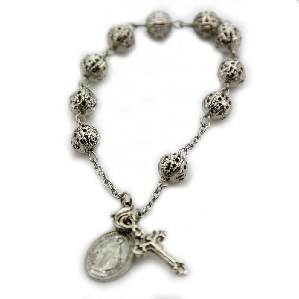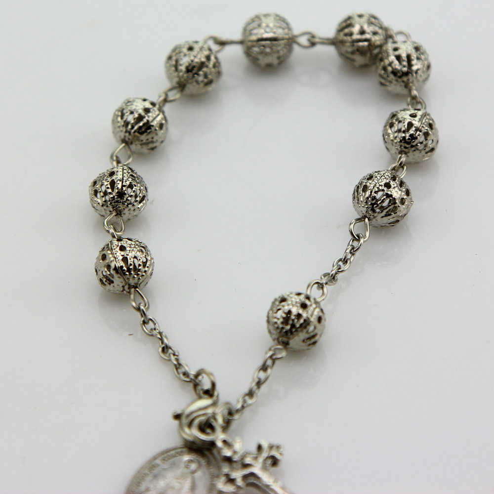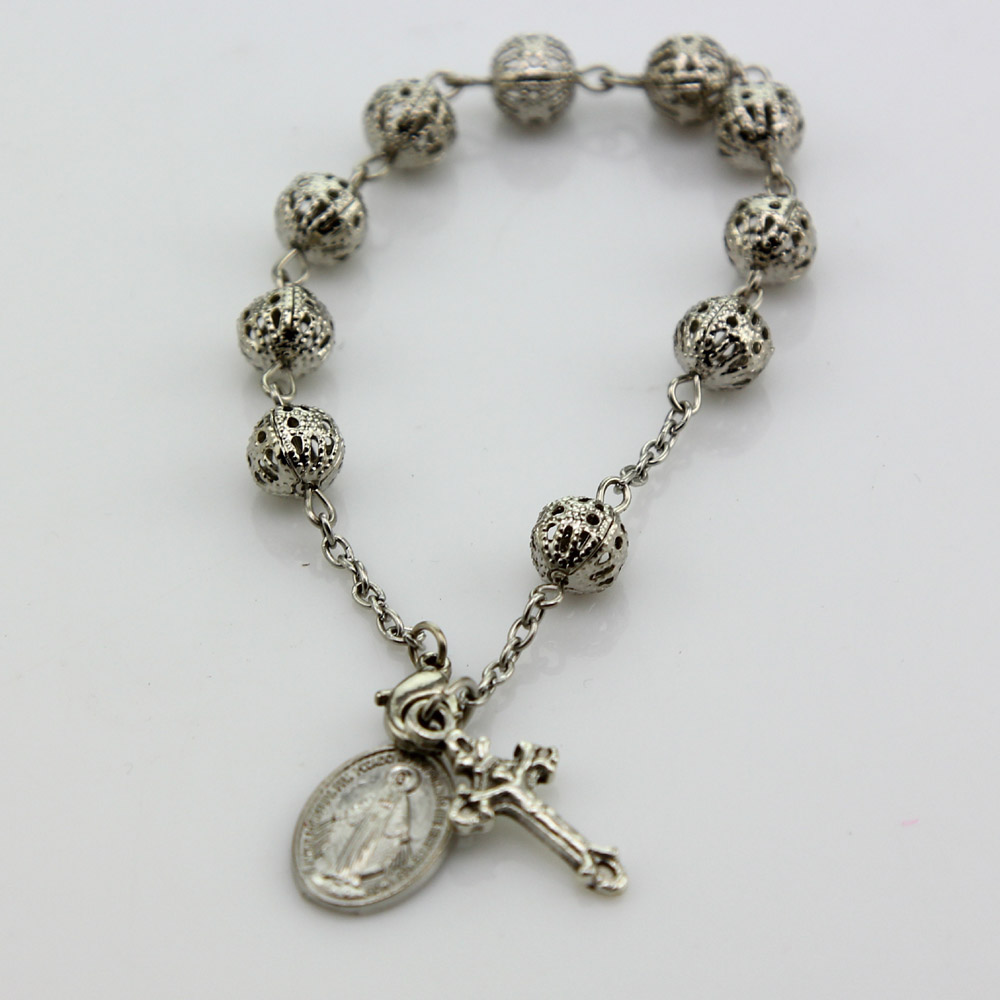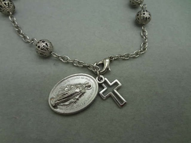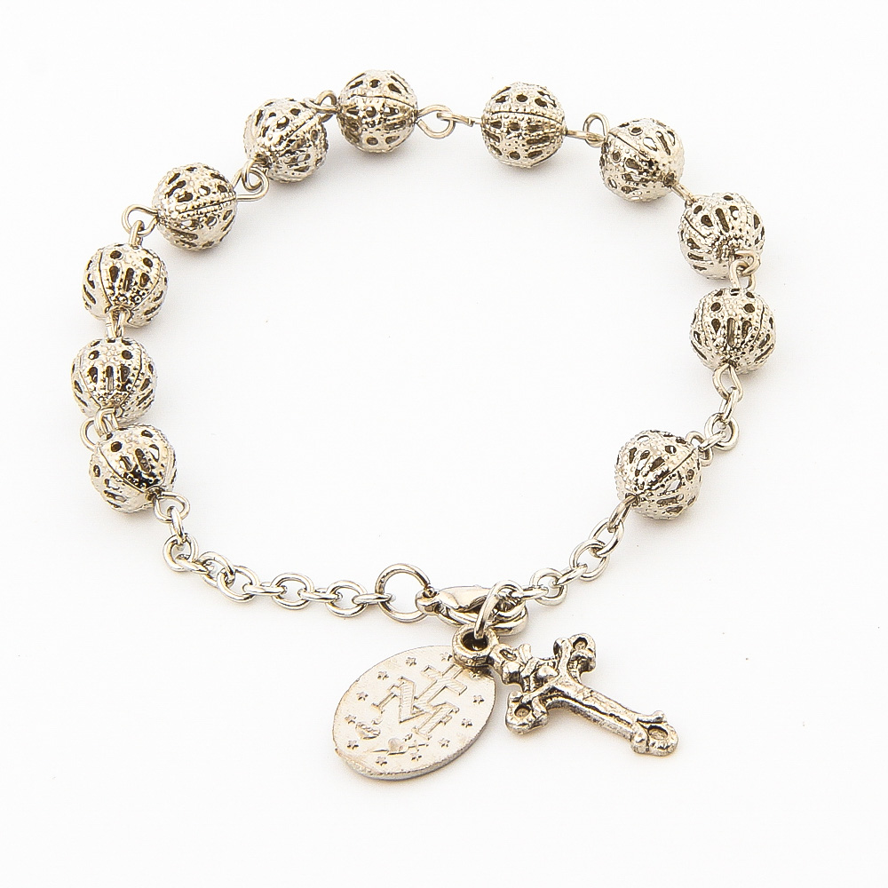 (銀色白K)車掛十字珠念珠洗禮珠十字架手鏈Rosary bracelet
