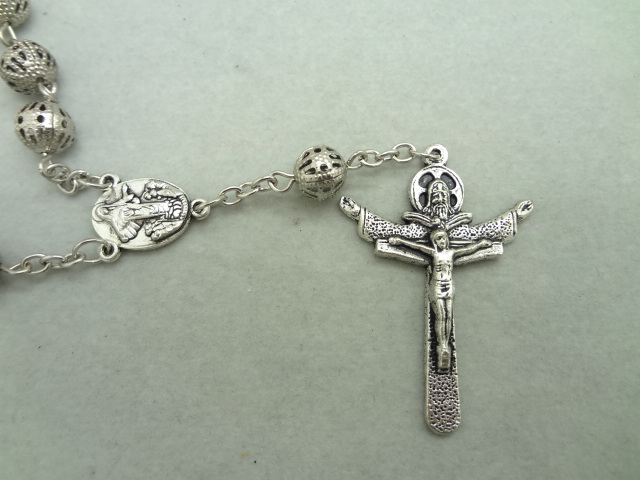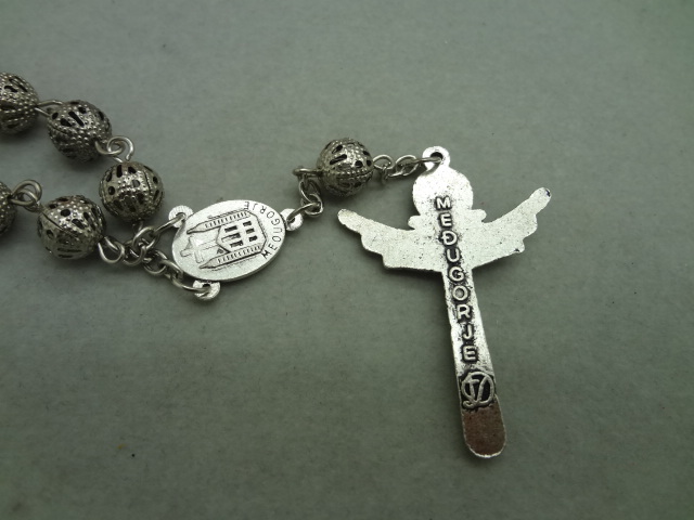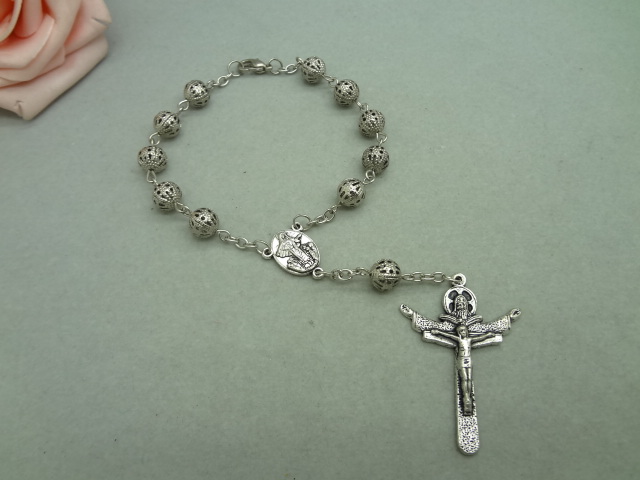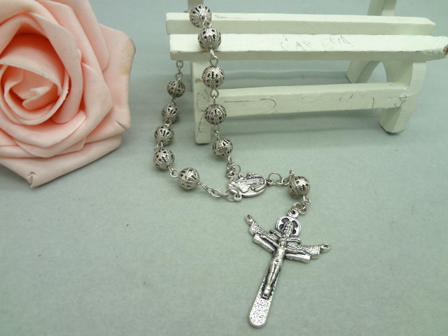 (銀色白K)車掛十字珠念珠洗禮珠十字架手鏈Rosary bracelet