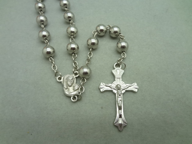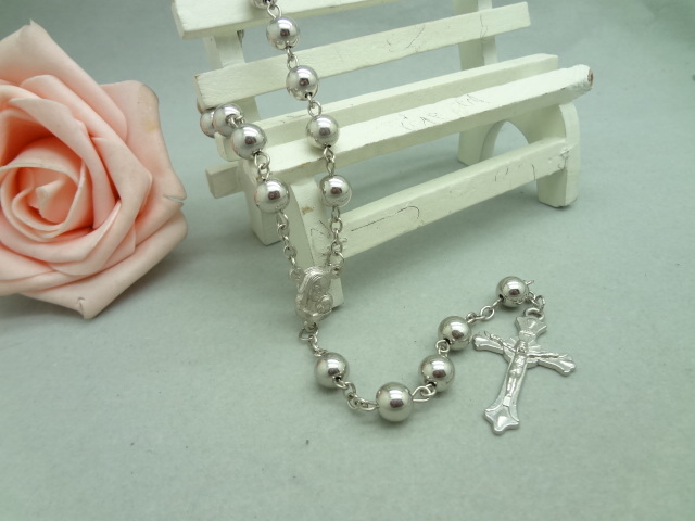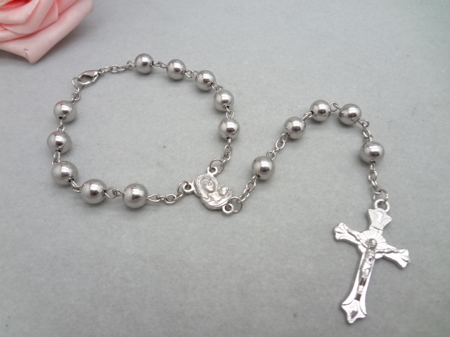 (銀色白K)車掛十字珠念珠洗禮珠十字架手鏈Rosary bracelet