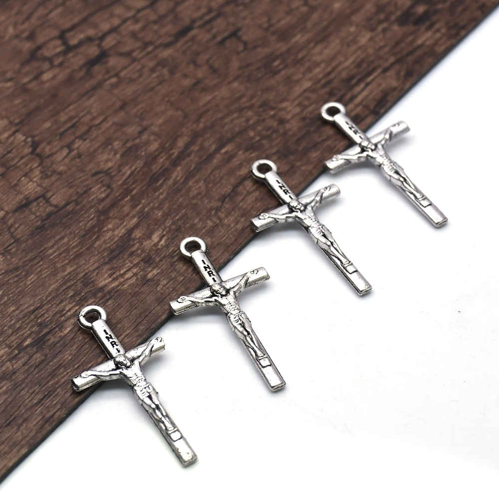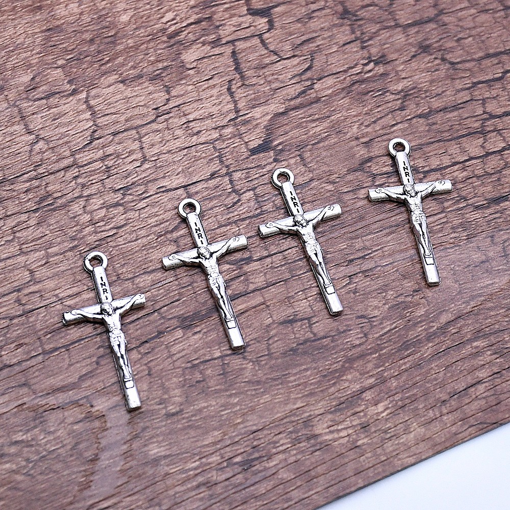 20/包 復古銀十字架小吊墜手鏈吊墜配件DIY念珠飾品
