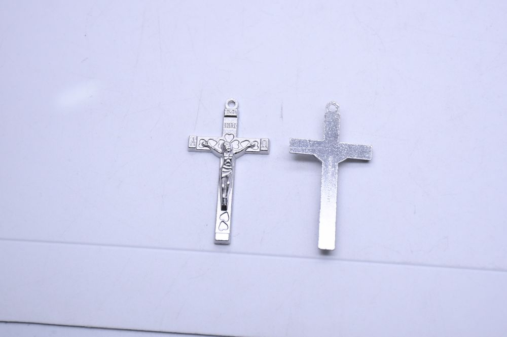 (10個每包)白K愛心十字架吊墜DIY飾品配件 念珠項鏈吊墜