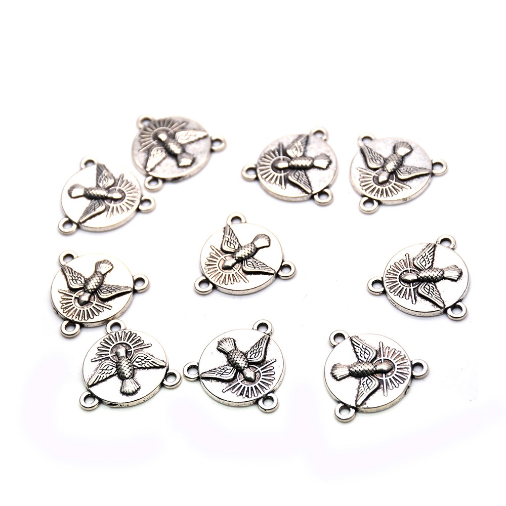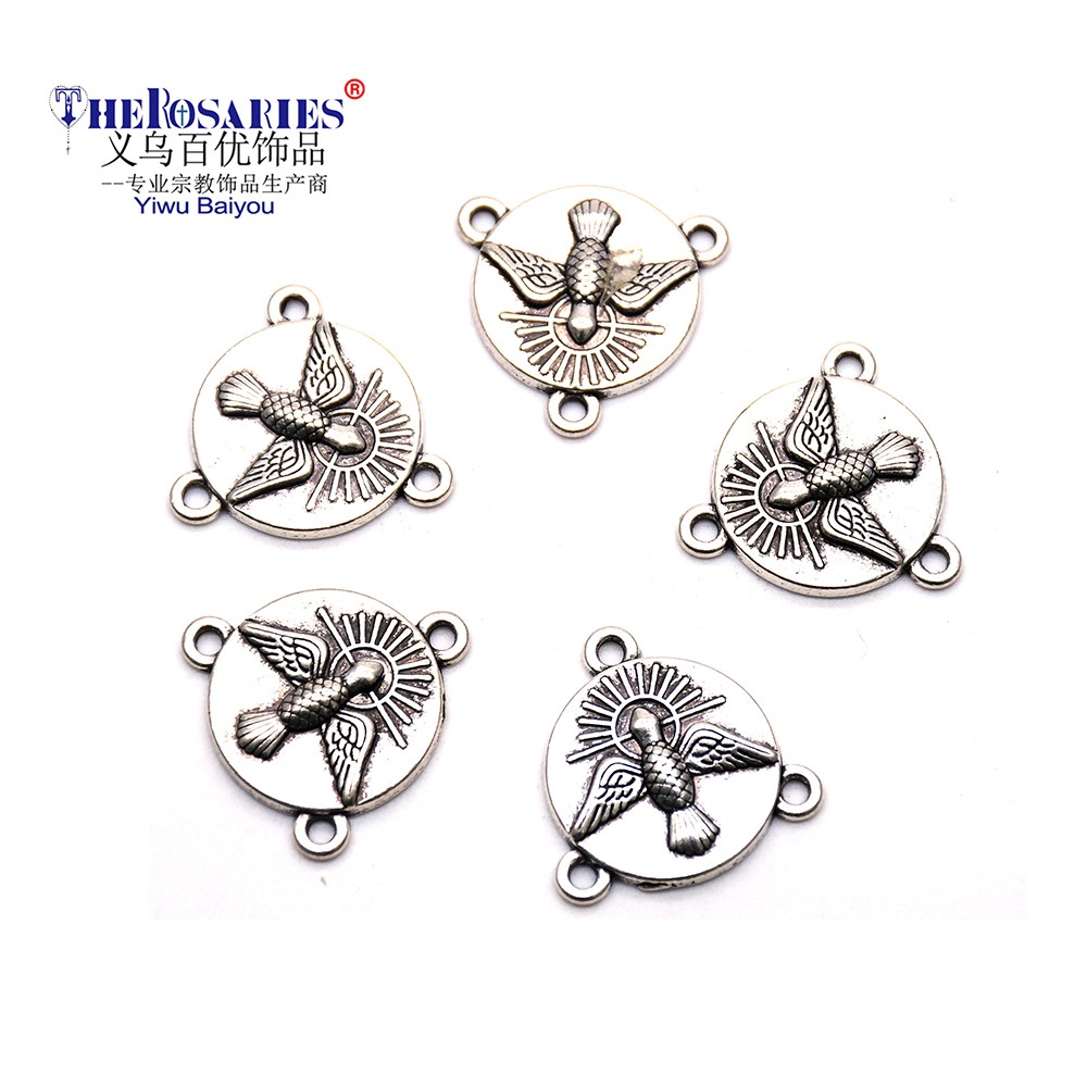 (10個每包)古銀合平鴿三角念珠項鏈配件三孔DIY飾品