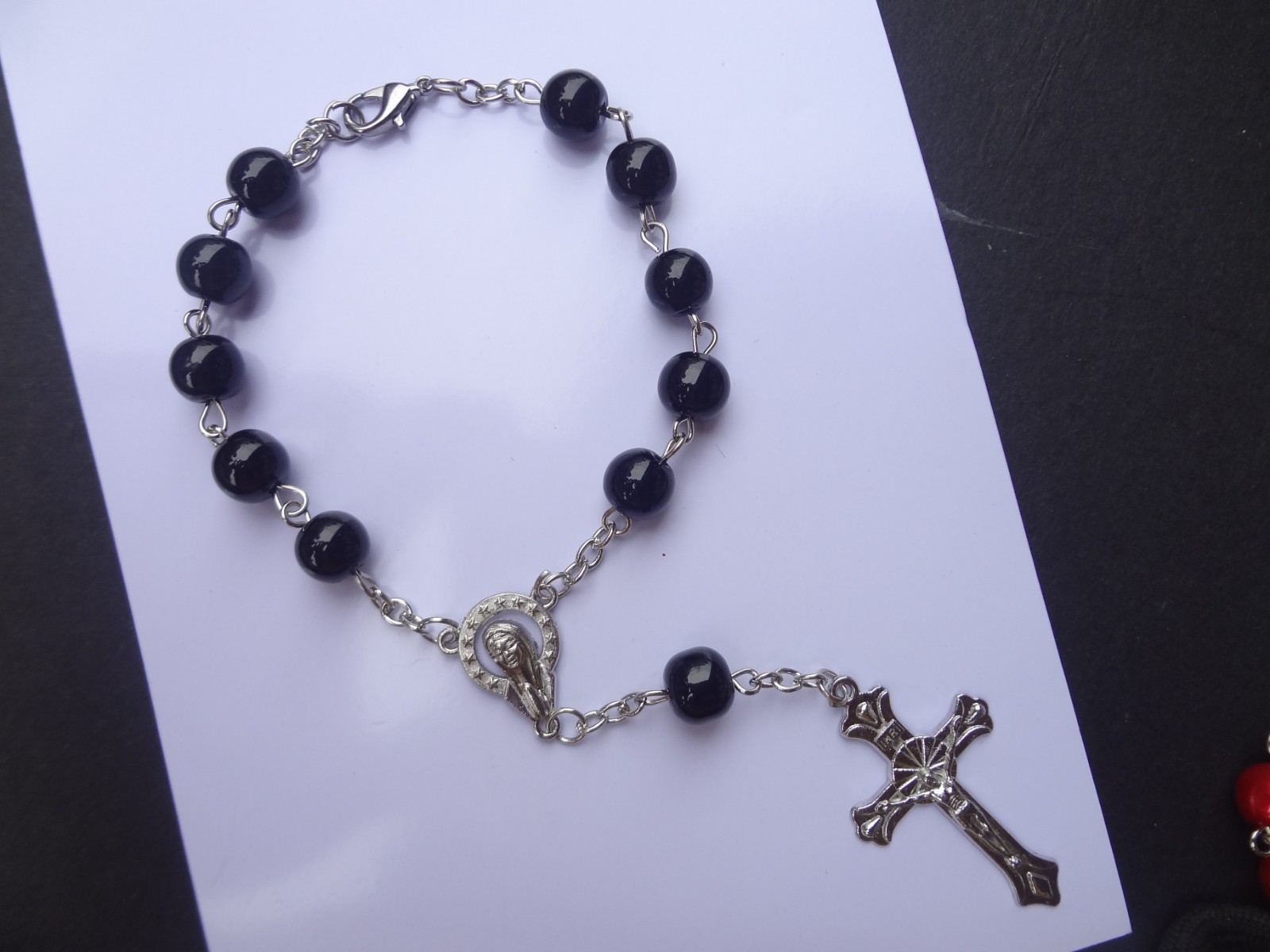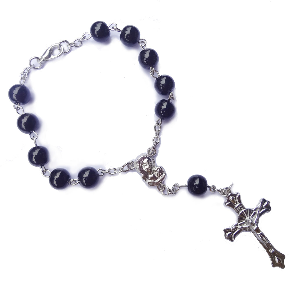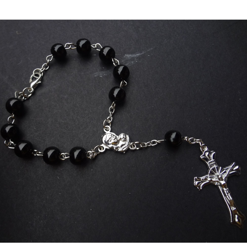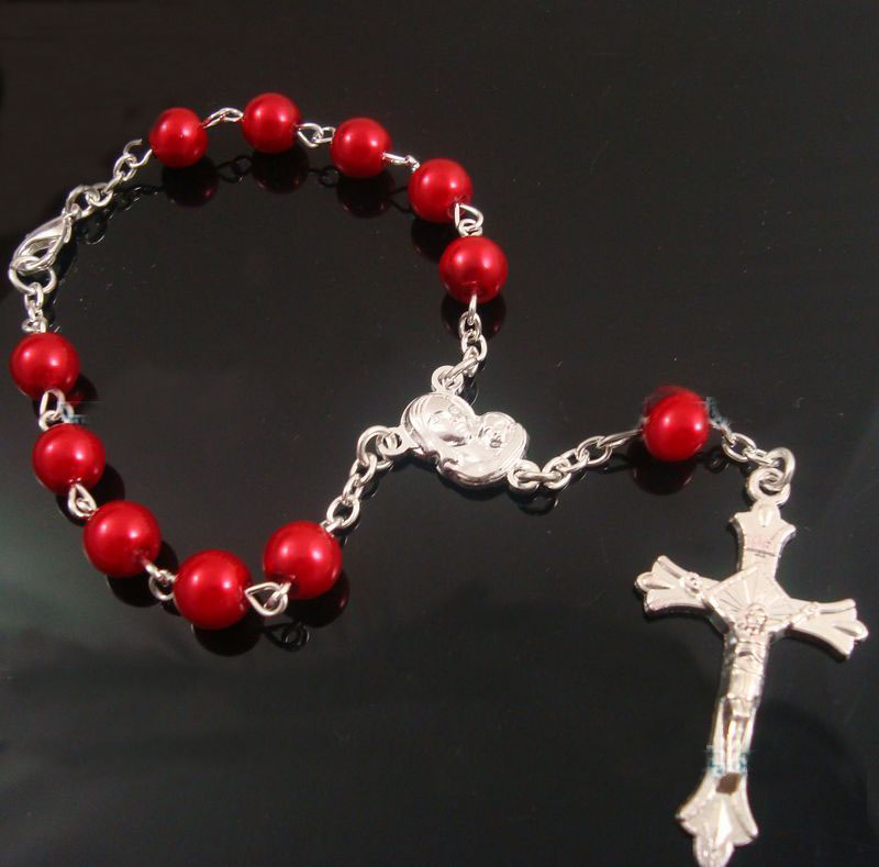 (銀色白K)車掛十字珠念珠洗禮珠十字架手鏈Rosary bracelet