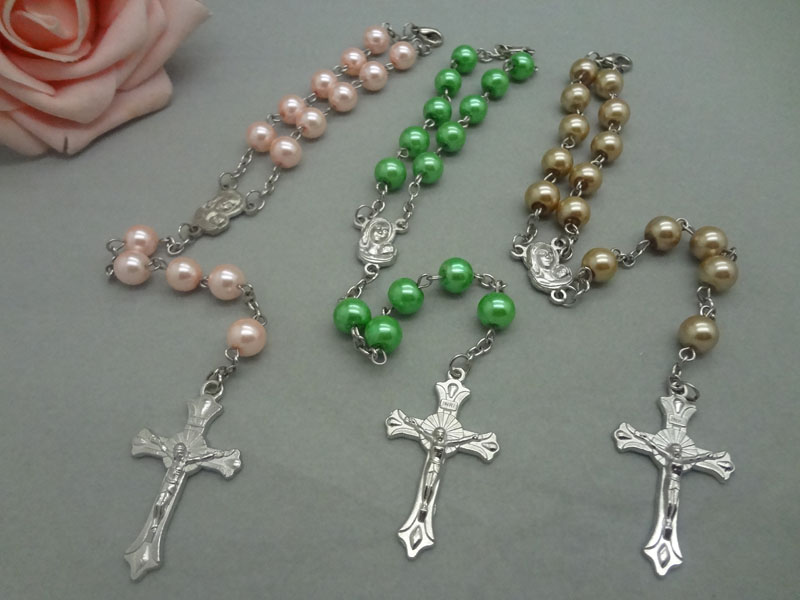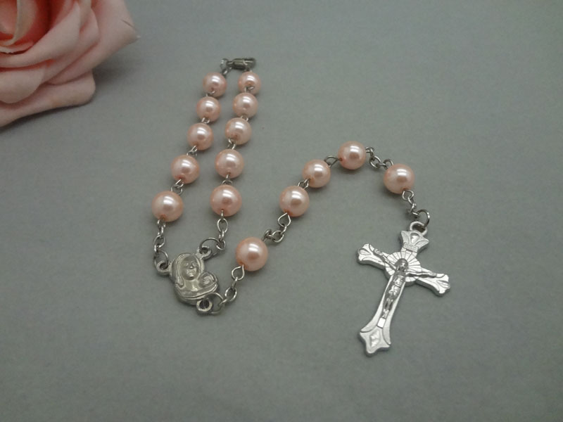 外貿(mào)跨境電商玫瑰十字架粉色念珠手鏈車掛