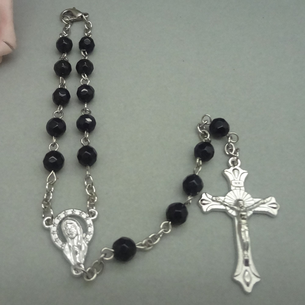 (銀色白K)車掛十字珠念珠洗禮珠十字架手鏈Rosary bracelet