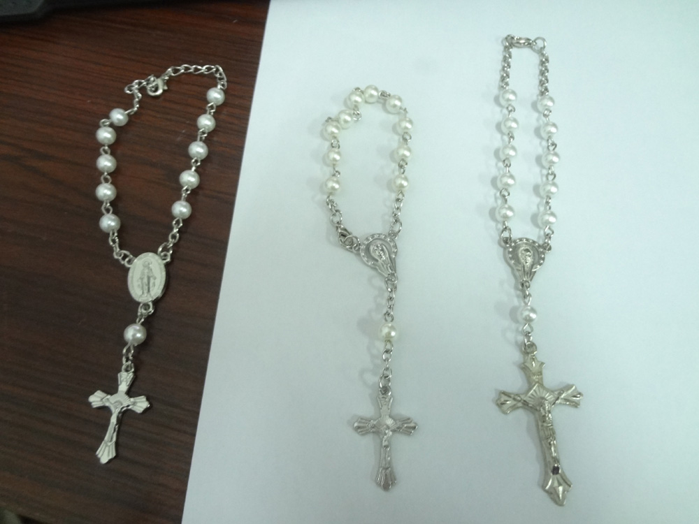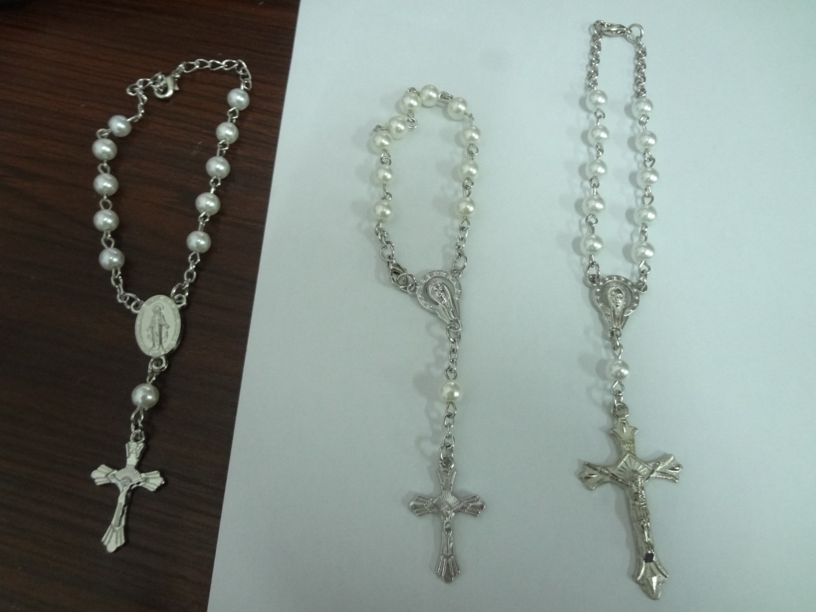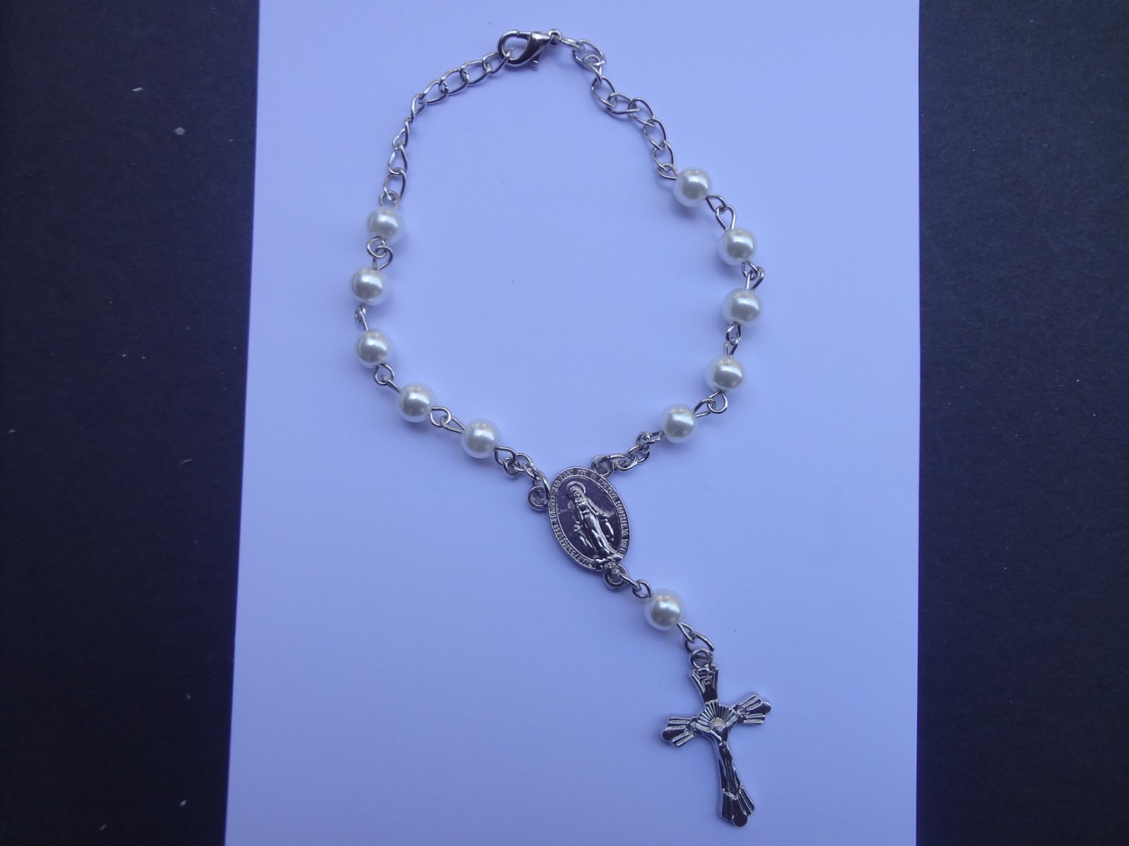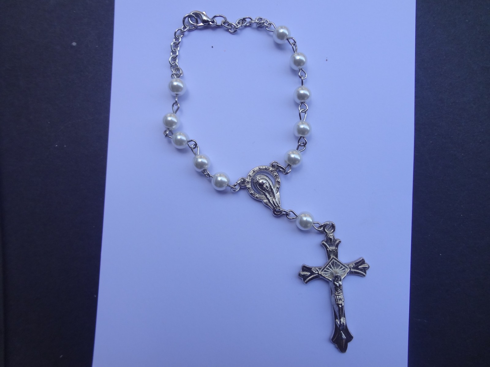 (銀色白K)車掛十字珠念珠洗禮珠十字架手鏈Rosary bracelet
