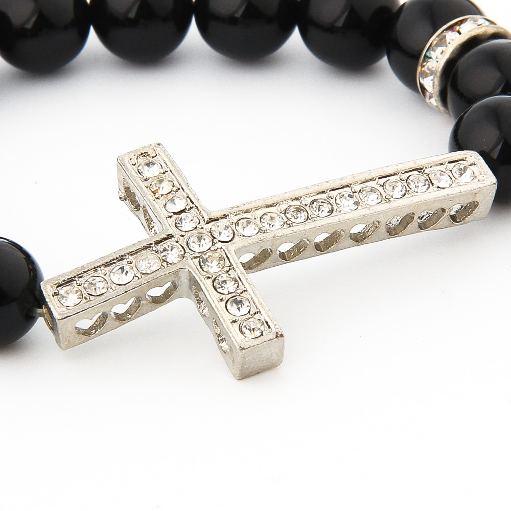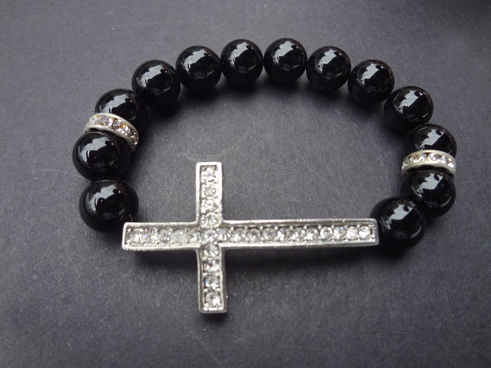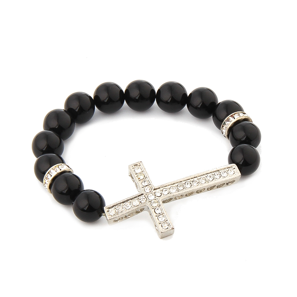 天然黑色瑪瑙串珠側(cè)邊十字架手鏈