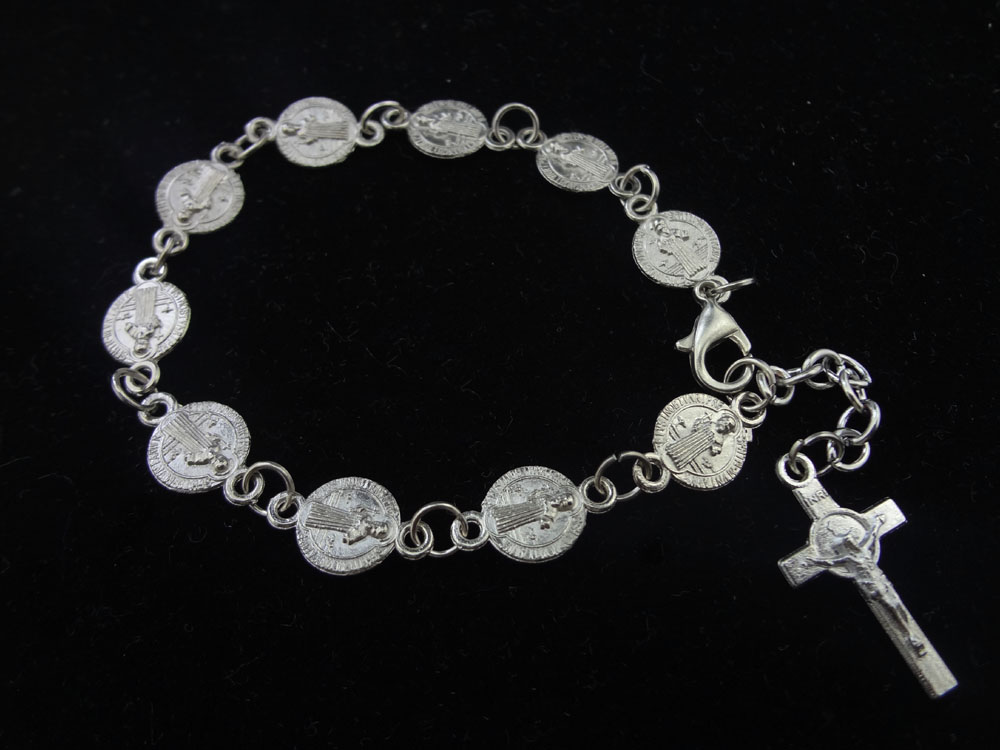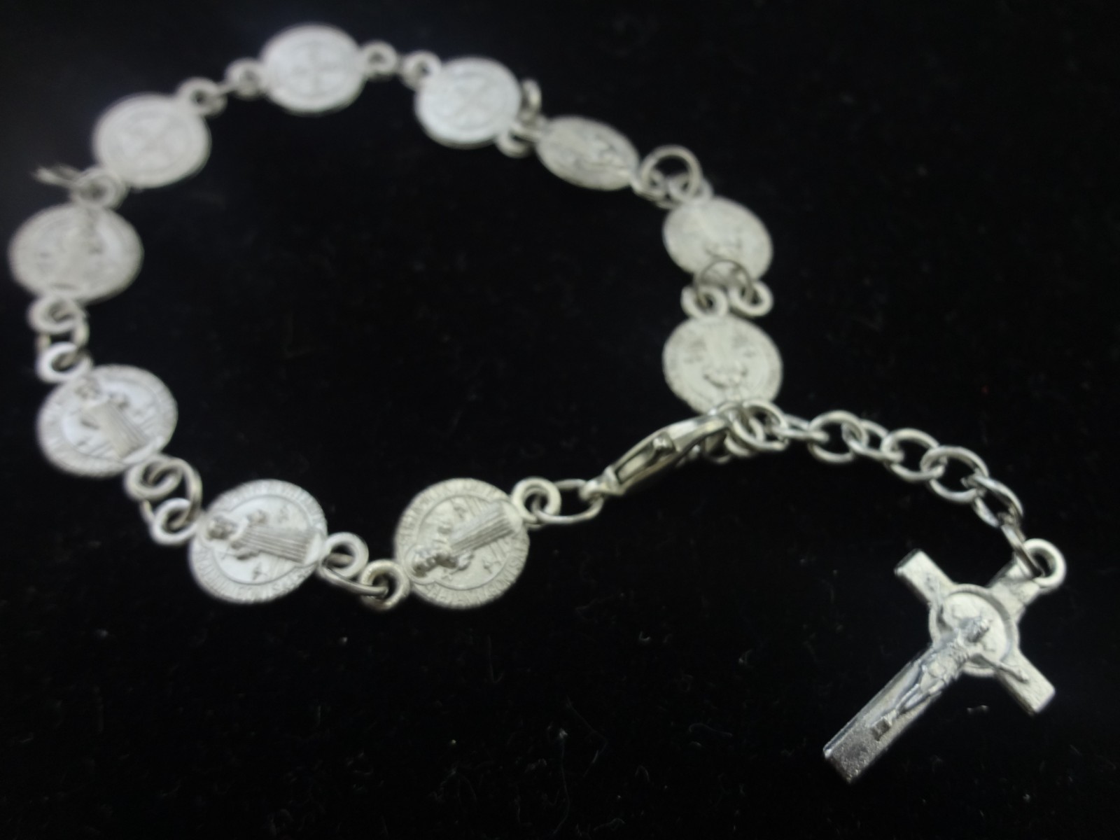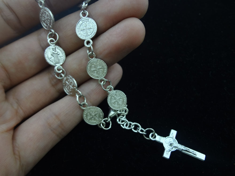 (銀色白K)車(chē)掛十字珠念珠洗禮珠十字架手鏈Rosary bracelet