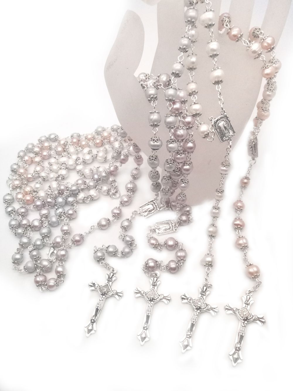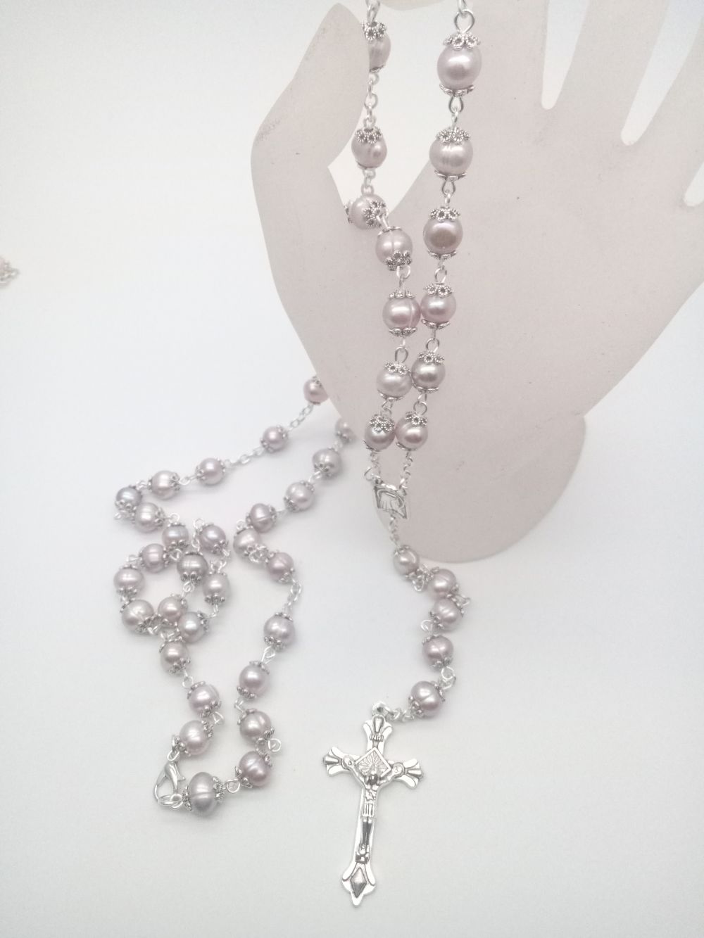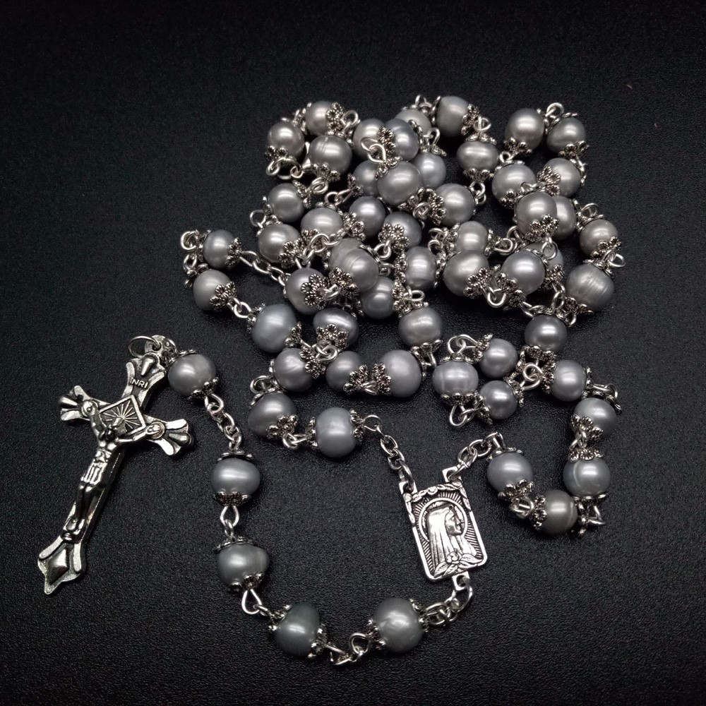 (灰)高檔念珠十字架禮品圣本篤天然淡水珍珠念珠項(xiàng)鏈飾品