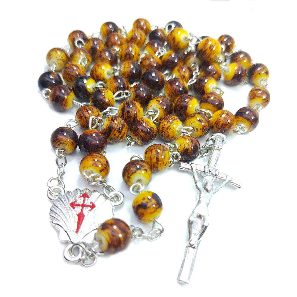 圣地亞哥海洋珠玫瑰經(jīng)貝殼十字架苦像計數(shù)珠彎針珠鏈 念珠項鏈十字架