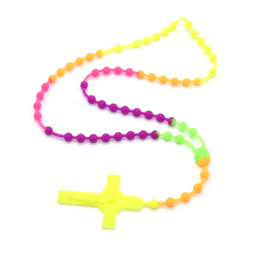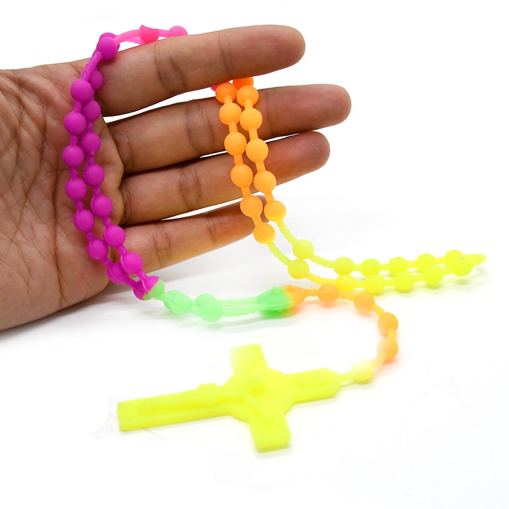 夜光十字架項(xiàng)鏈連線珠 塑料發(fā)光念珠項(xiàng)鏈(顏色隨機(jī),按12條倍數(shù)拍)
