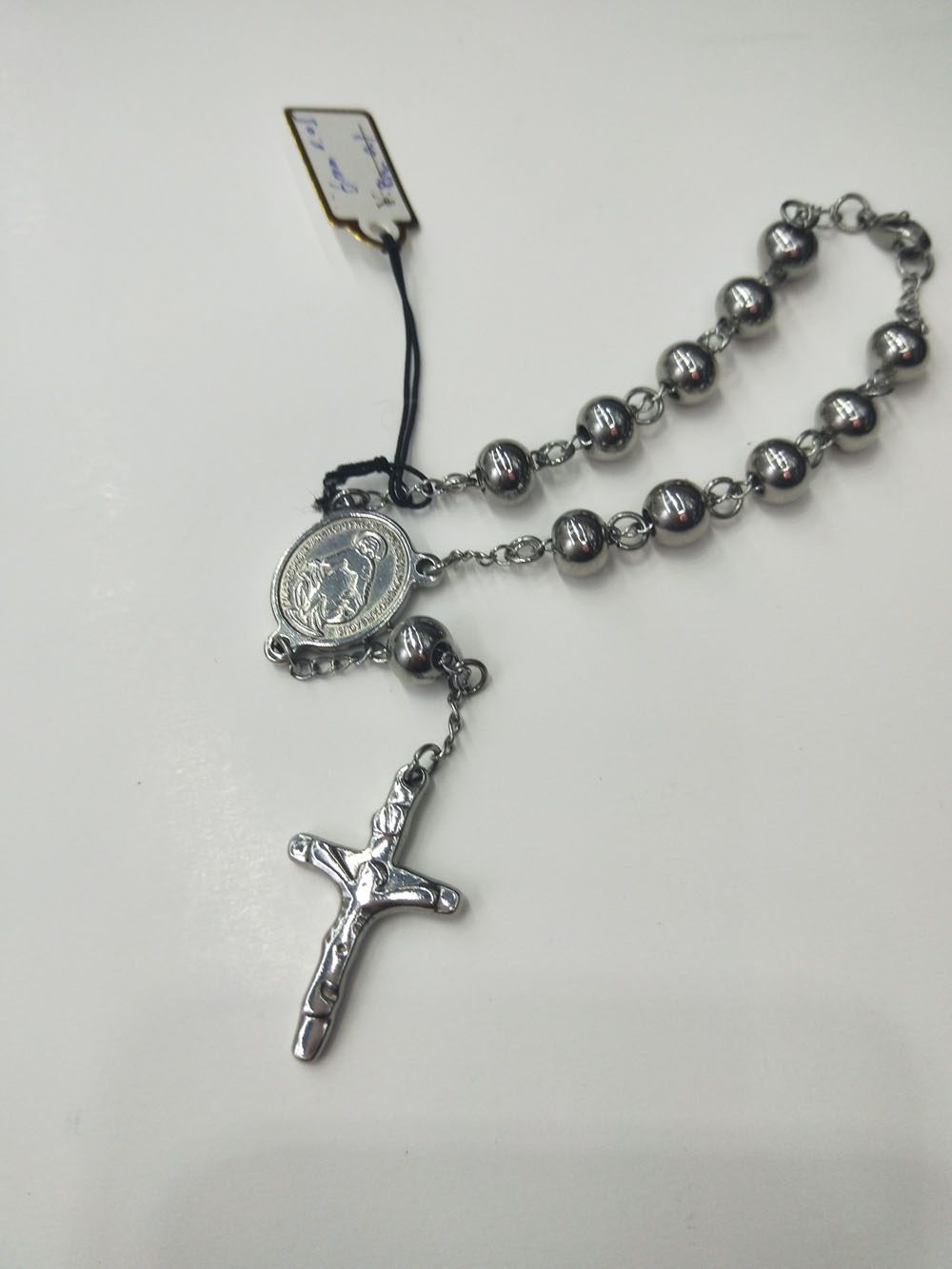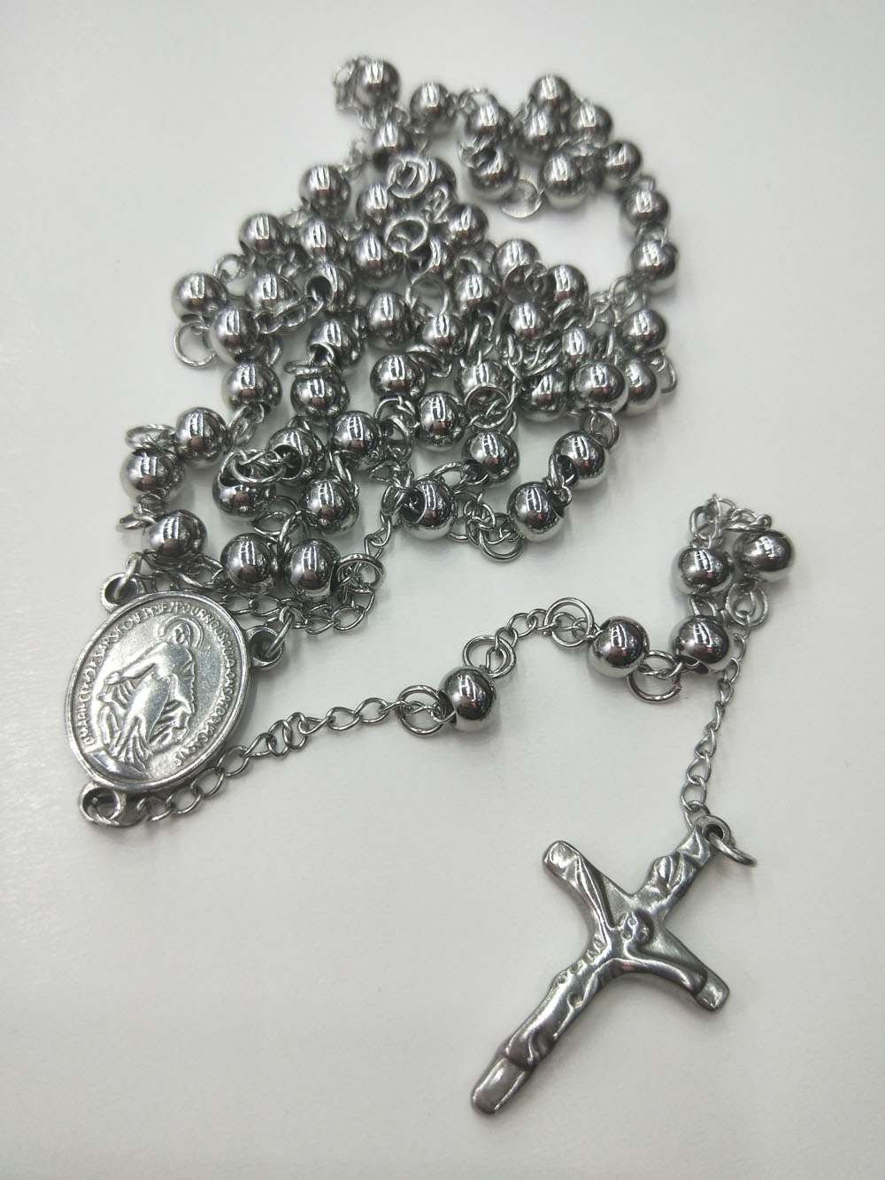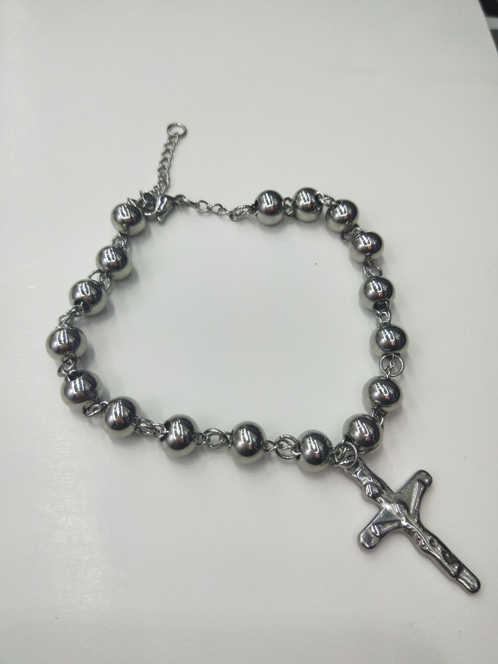 (白K銀)6mm銅珠念珠十字架項鏈祈禱珠十字架