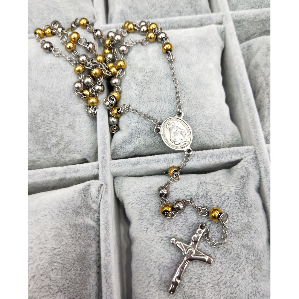 金-銀雙色 6mm 不銹鋼念珠項鏈十字架金銀飾品
