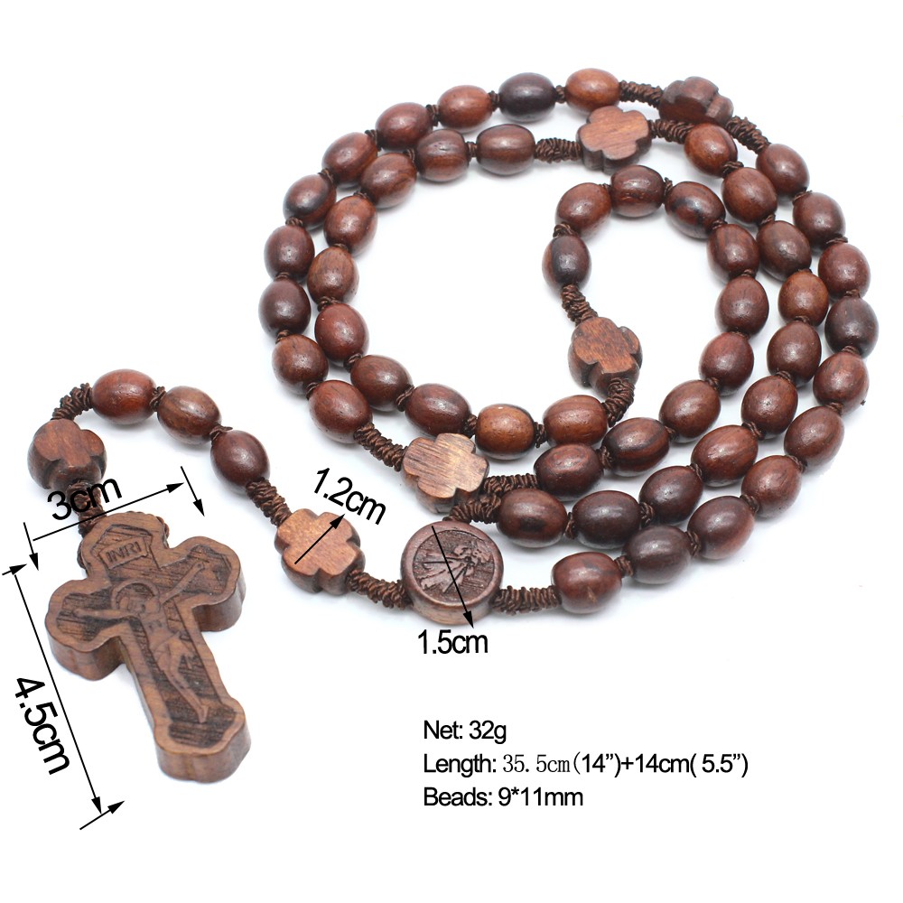 (深咖)念珠項(xiàng)鏈木珠手工編制十字架項(xiàng)鏈 外貿(mào)飾品