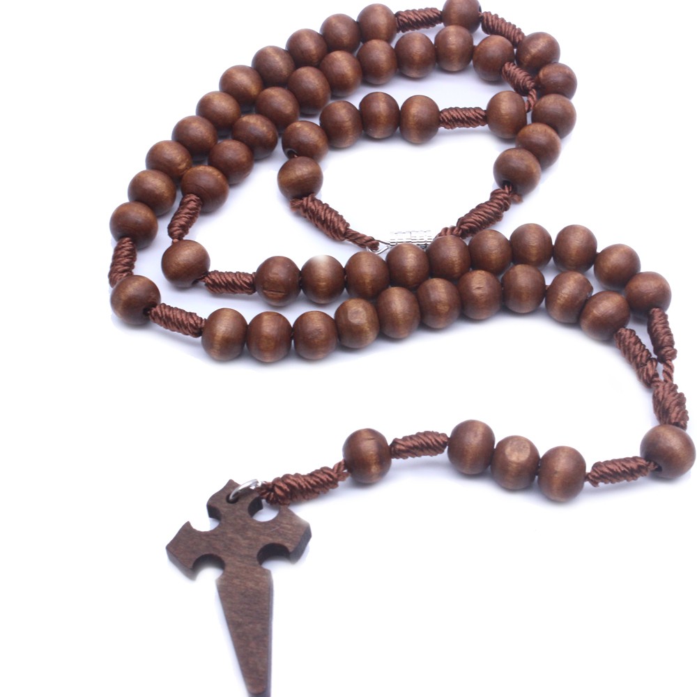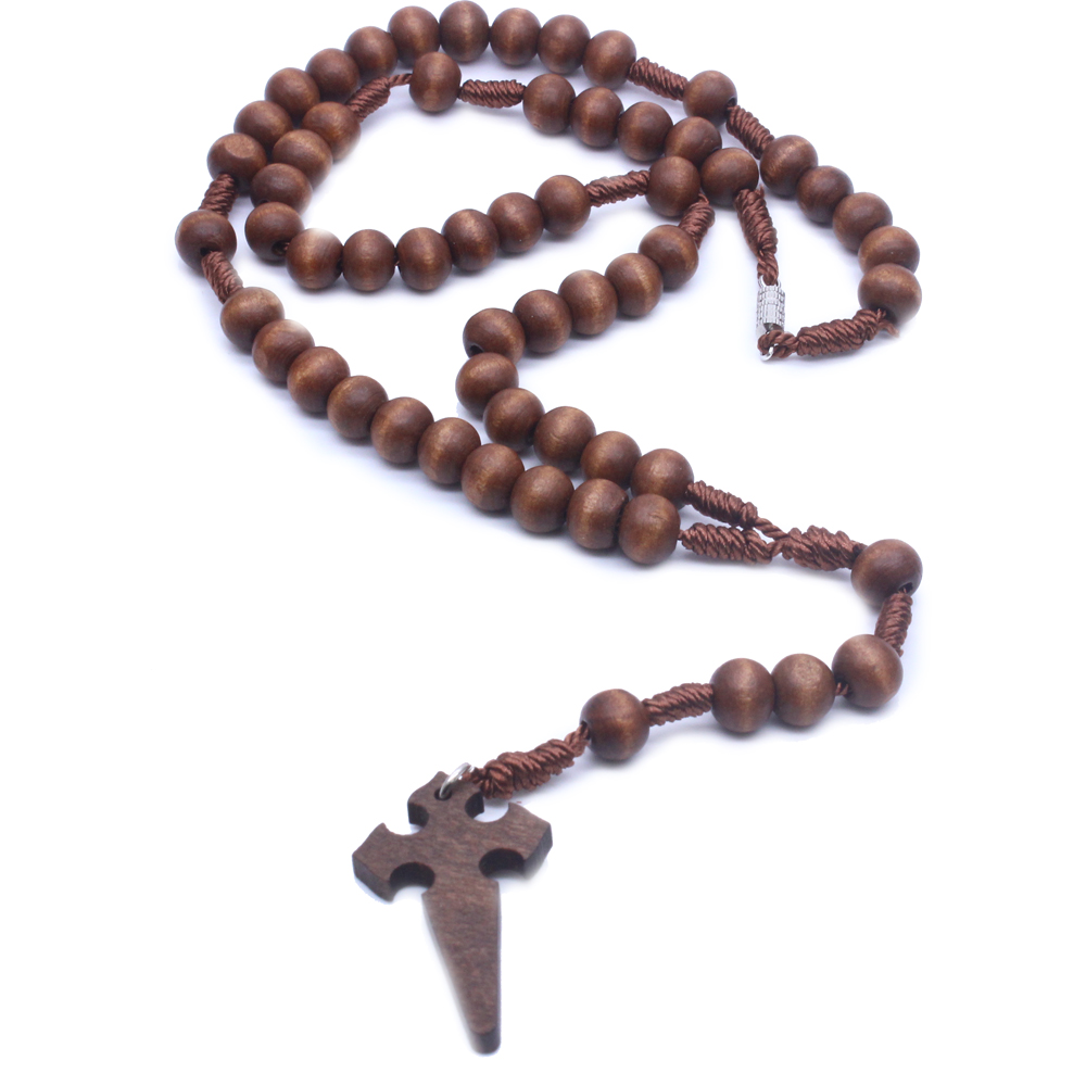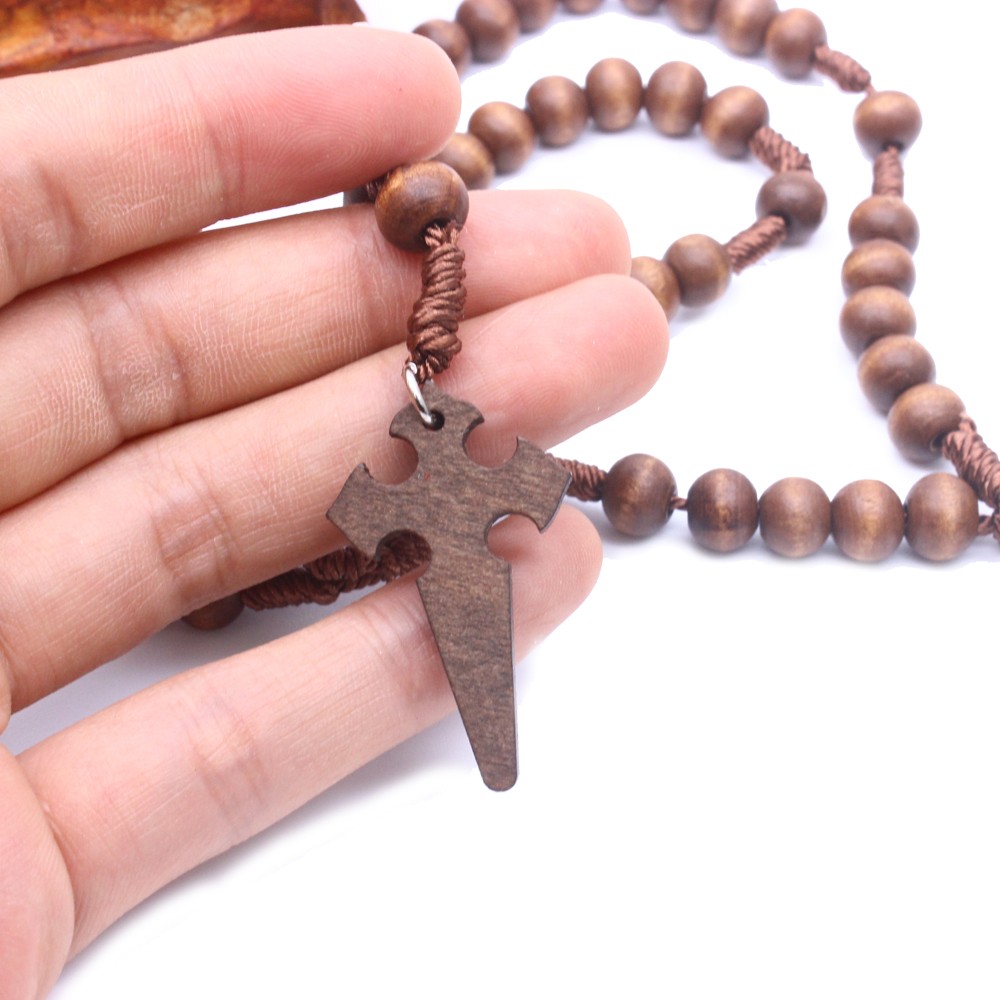 (深咖)念珠項(xiàng)鏈木珠手工編制十字架項(xiàng)鏈 外貿(mào)飾品