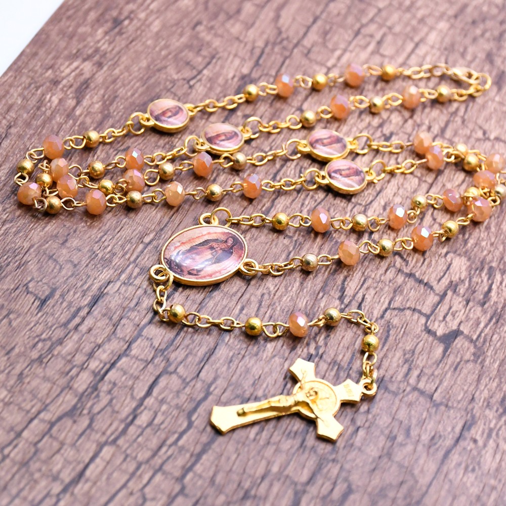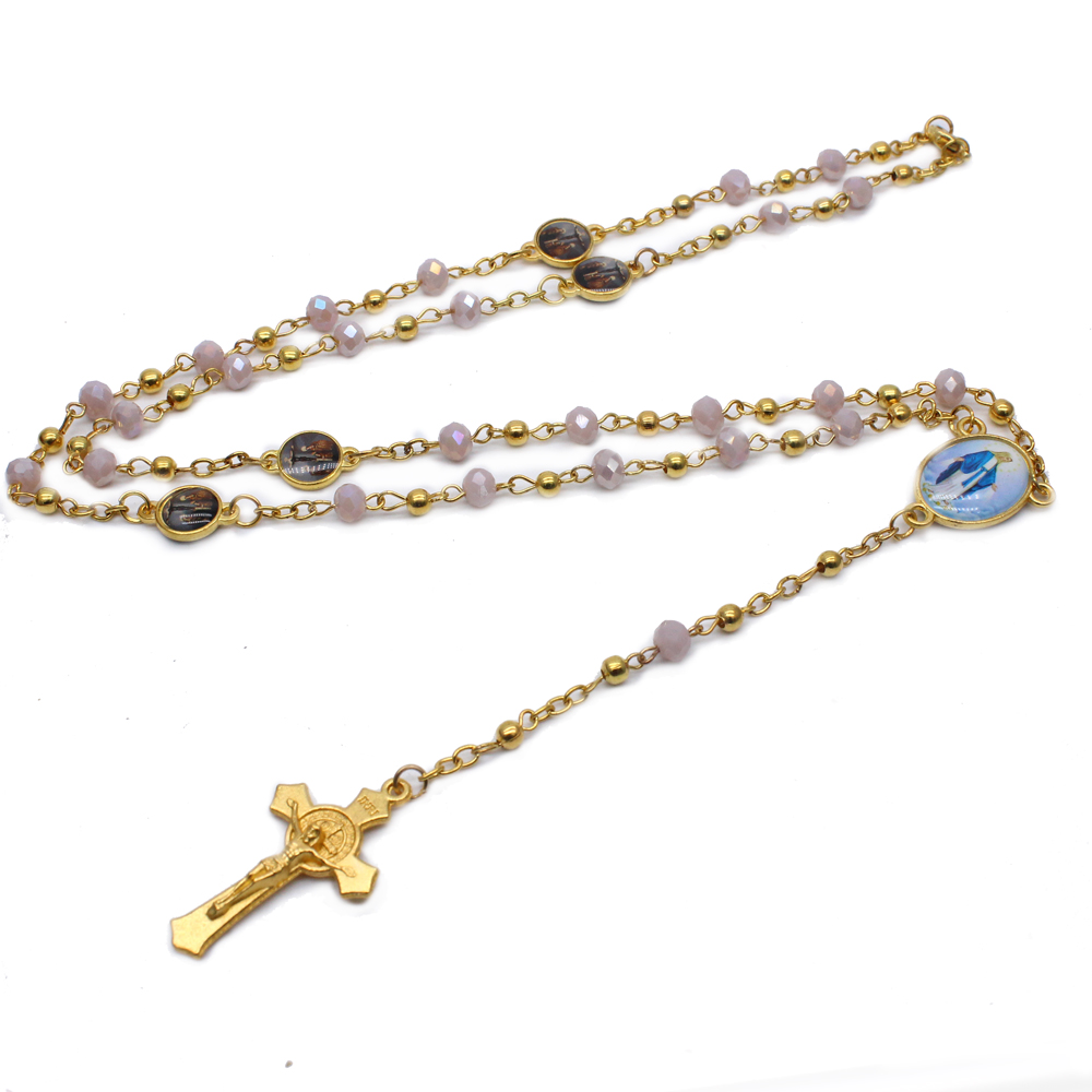 500條起訂 6mm水晶帶花托念珠項鏈十字架項鏈