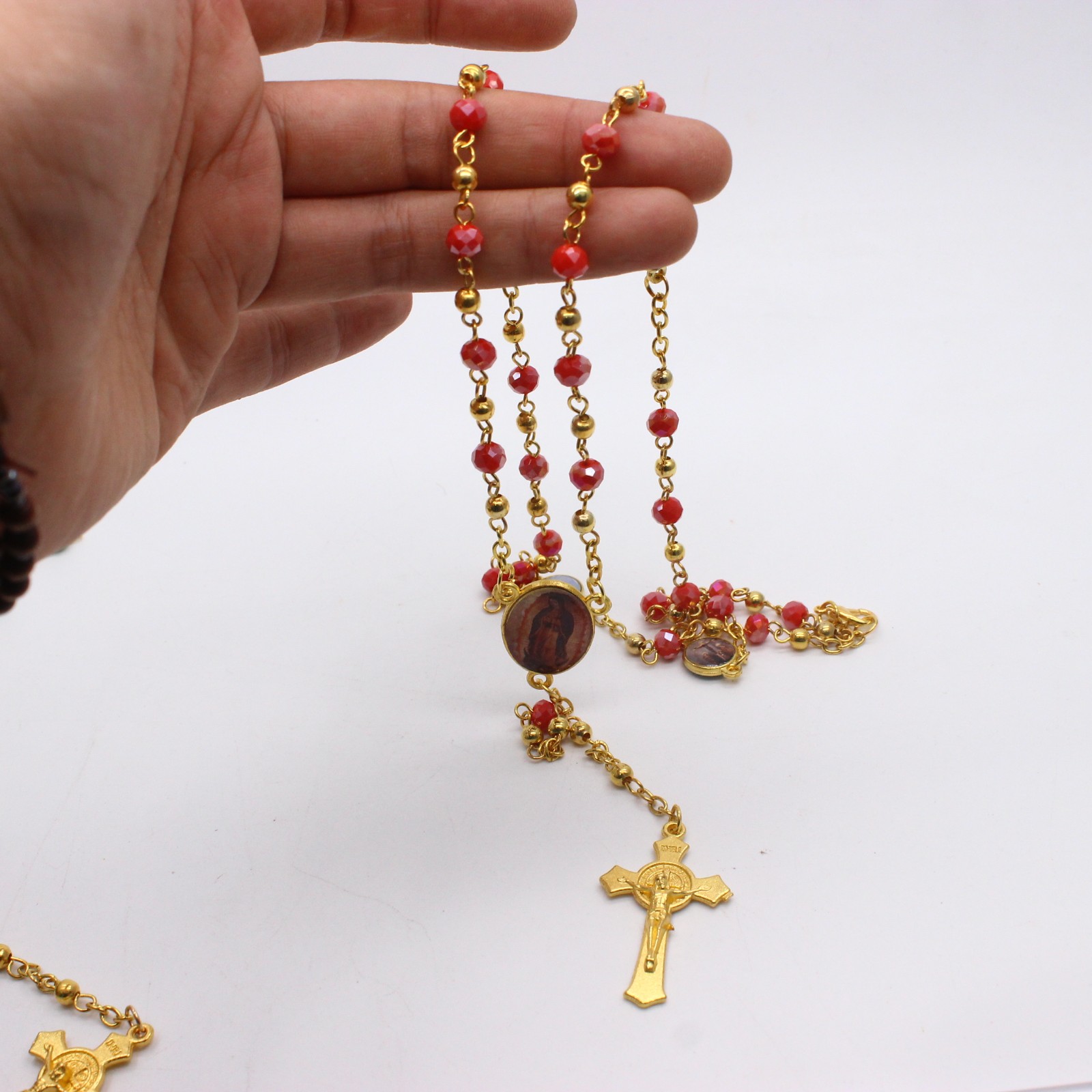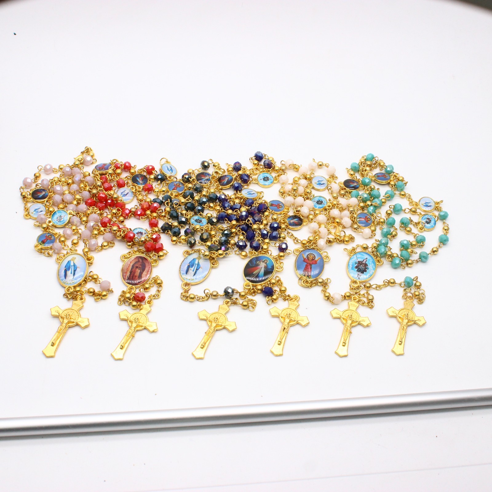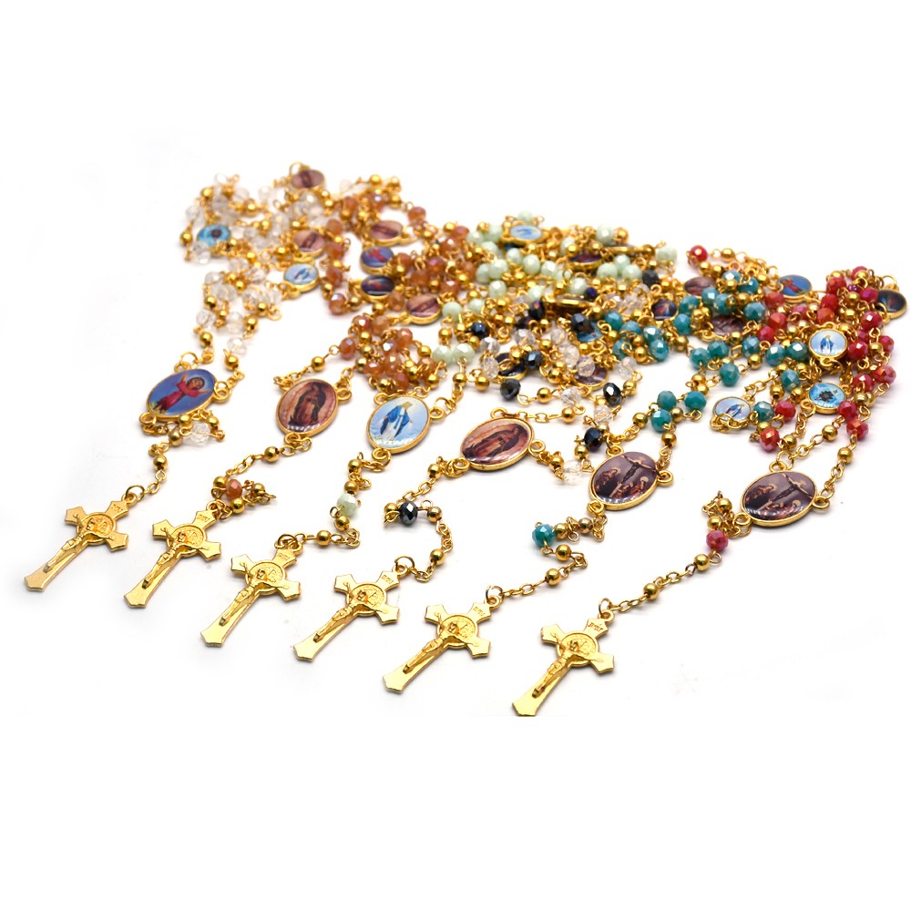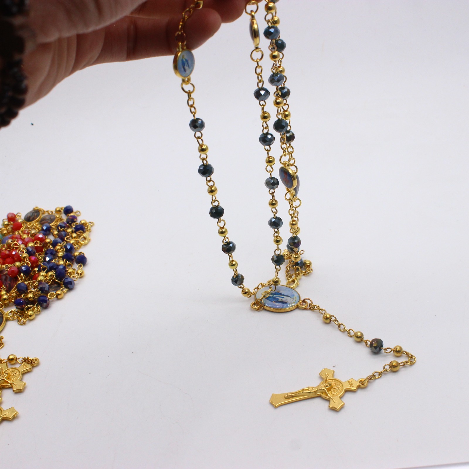 外貿(mào)出口貨源水晶十字架念珠Rosary項鏈飾品批發(fā)多色選 6*8