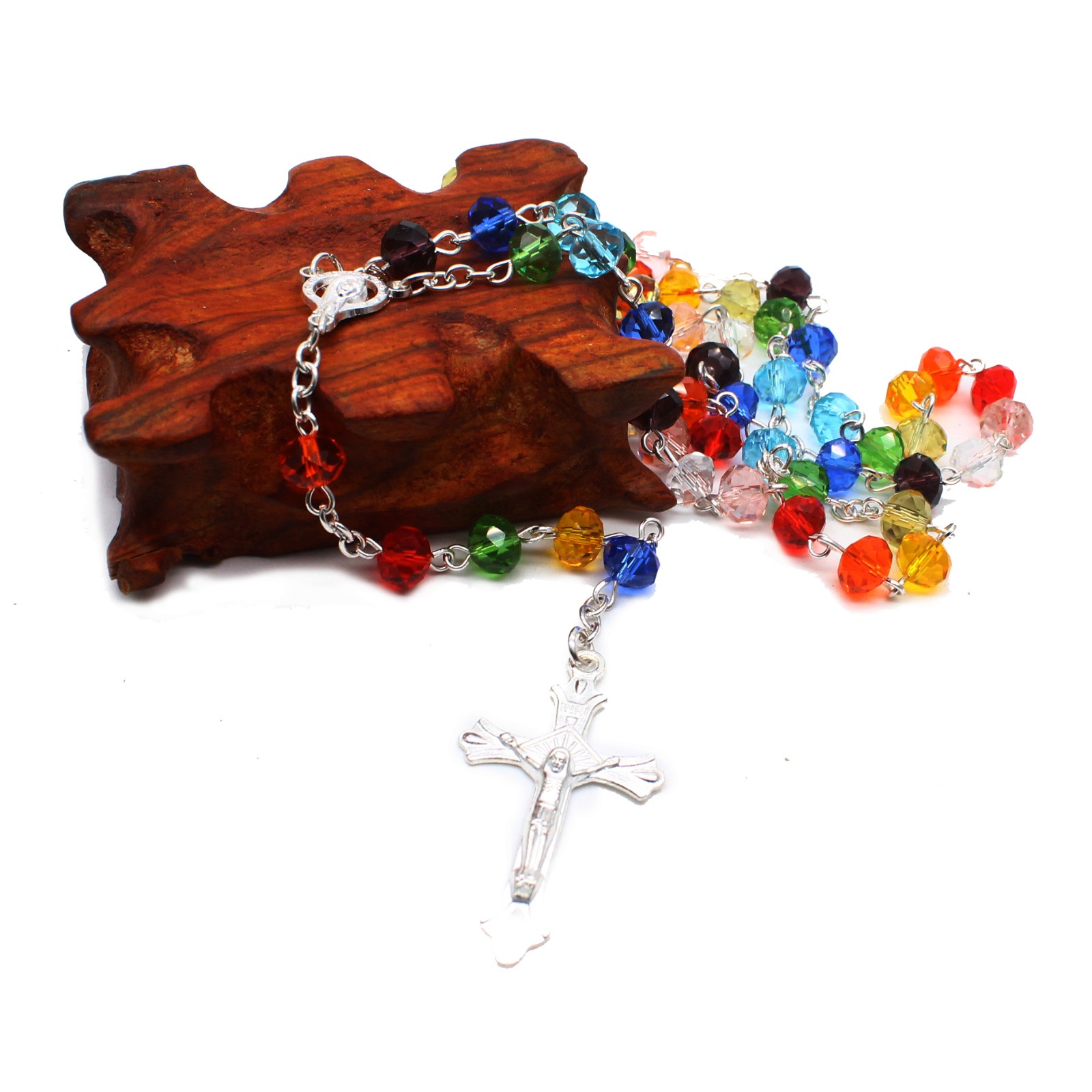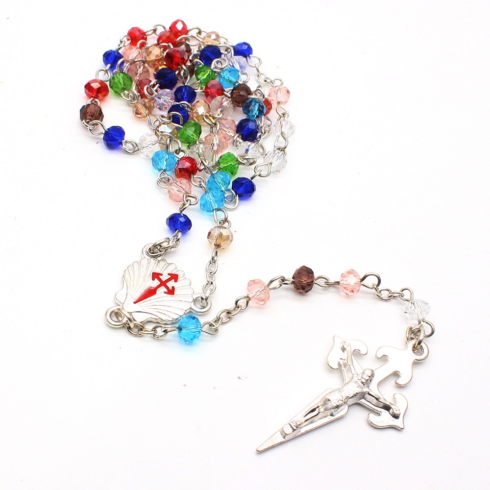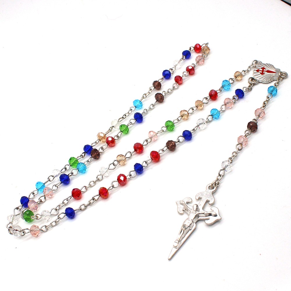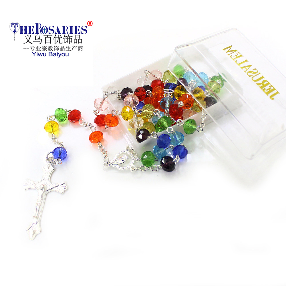 外貿(mào)出口貨源水晶十字架念珠Rosary項(xiàng)鏈飾品批發(fā)多色選 6*8