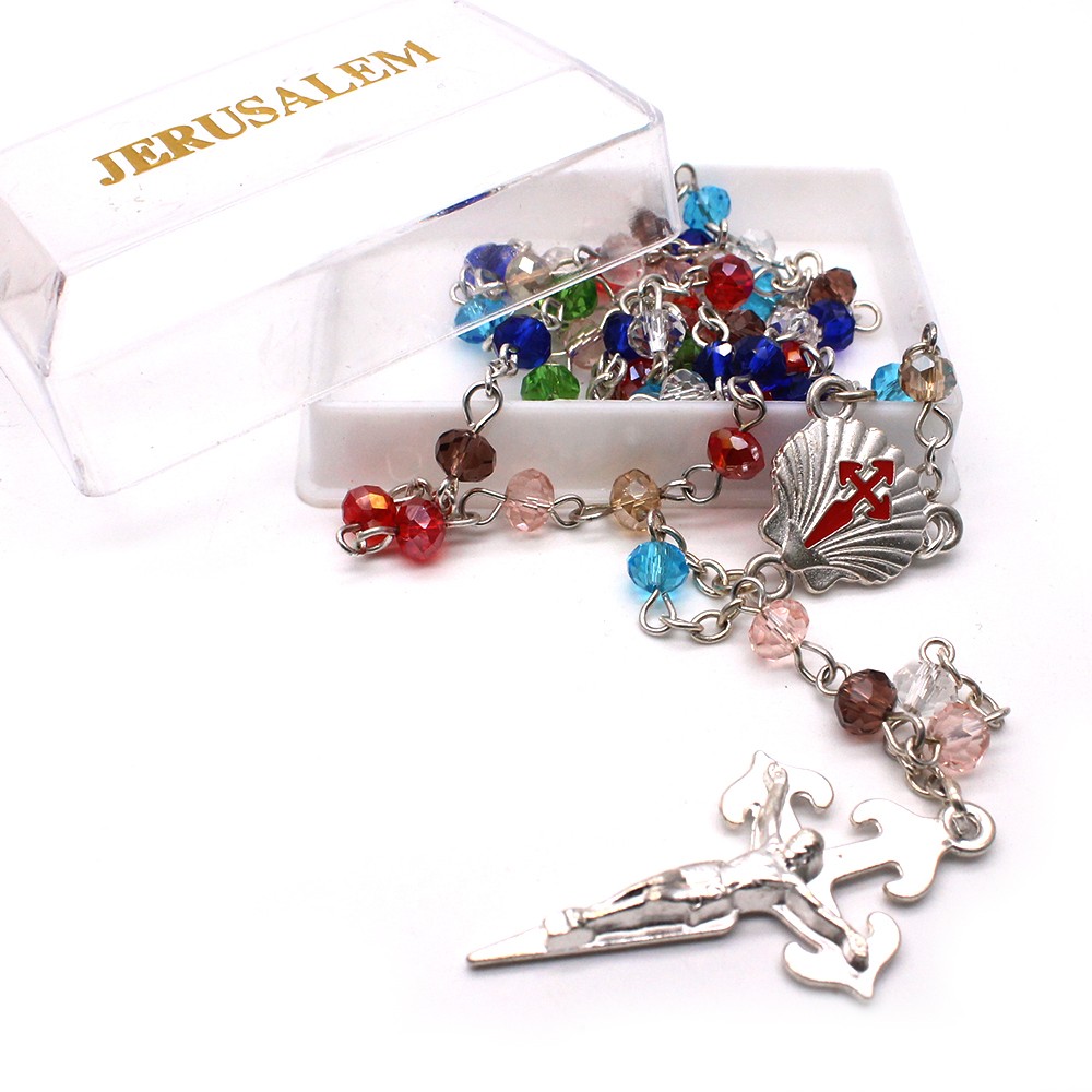 外貿(mào)工廠(chǎng)貨源水晶念珠JERUSALEM耶路撒冷帶盒十字架項(xiàng)鏈用品禮品