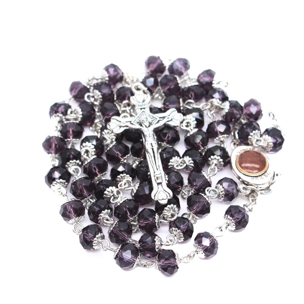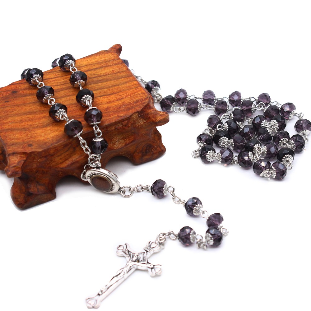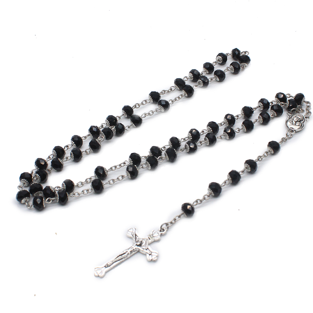 (黑)水晶花托念珠十字架項(xiàng)鏈祈禱珠圣徒禱告用品禮品贈(zèng)品