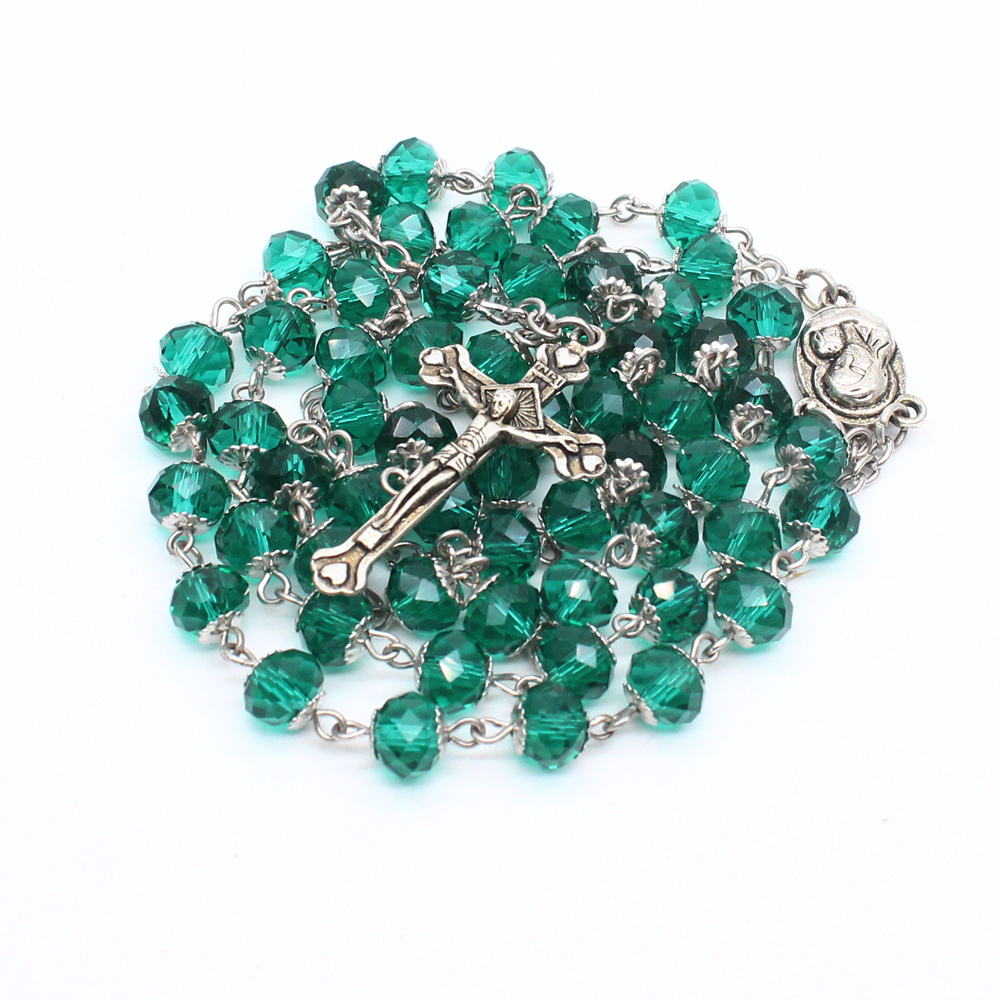 外貿(mào)出口貨源水晶十字架念珠Rosary項(xiàng)鏈飾品批發(fā)多色選 6*8