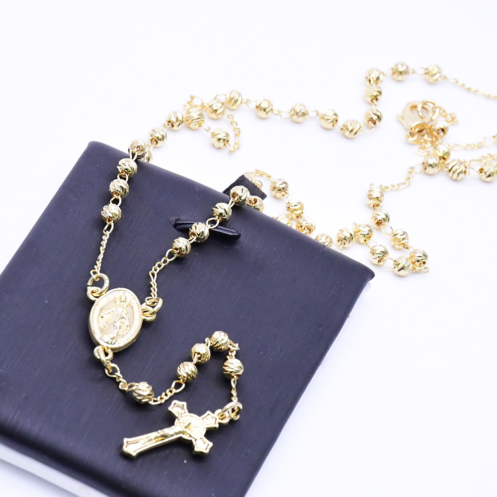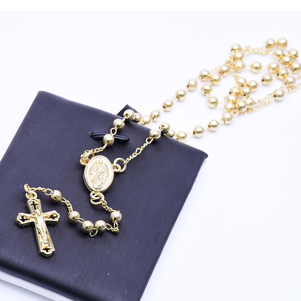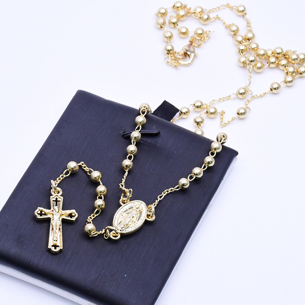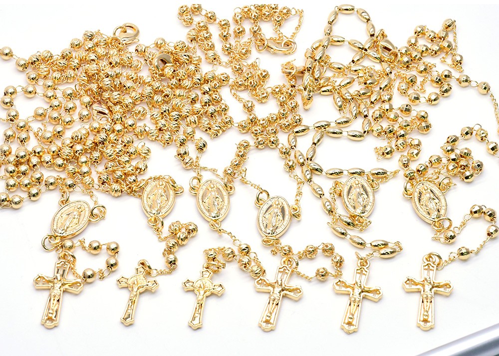 金銀雙色6mm銅珠念珠十字架項(xiàng)鏈祈禱珠跨境電商十字架用品批發(fā)