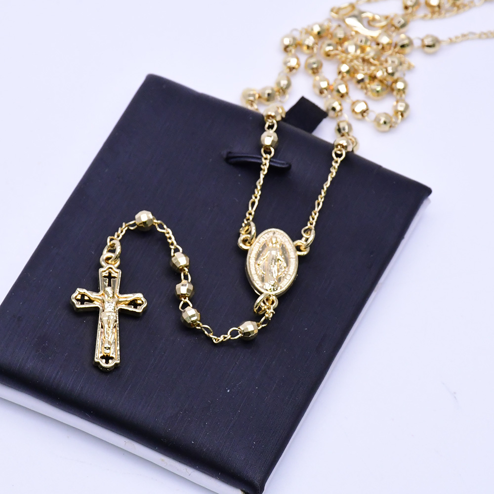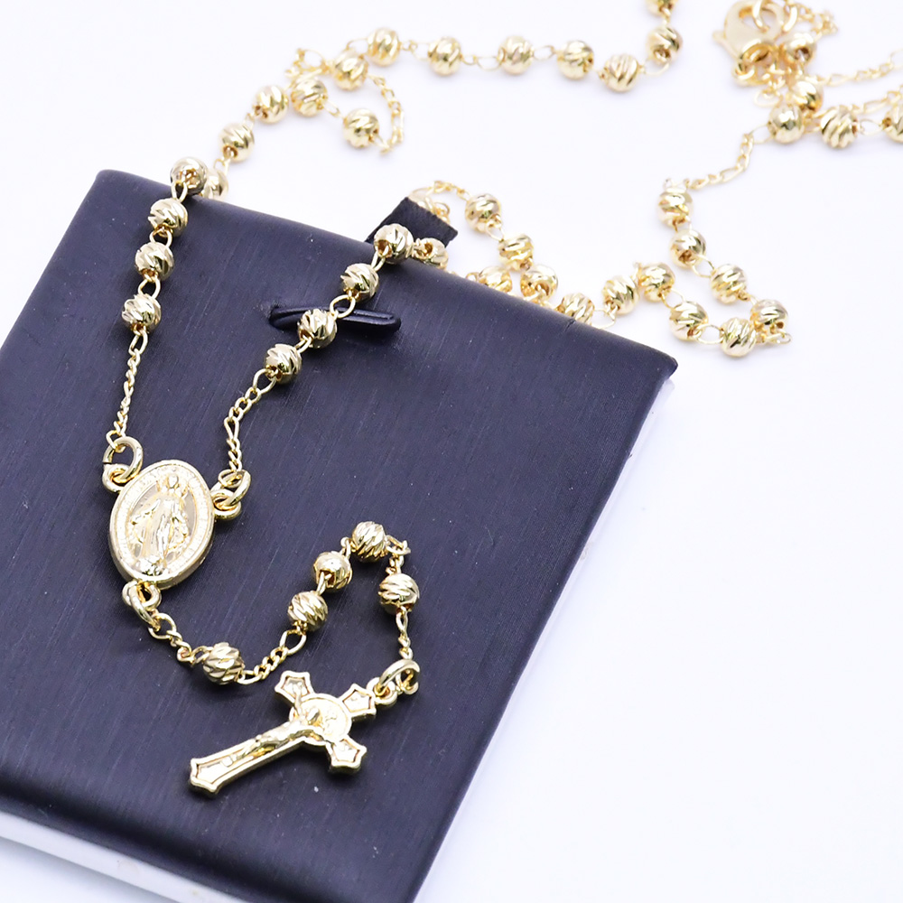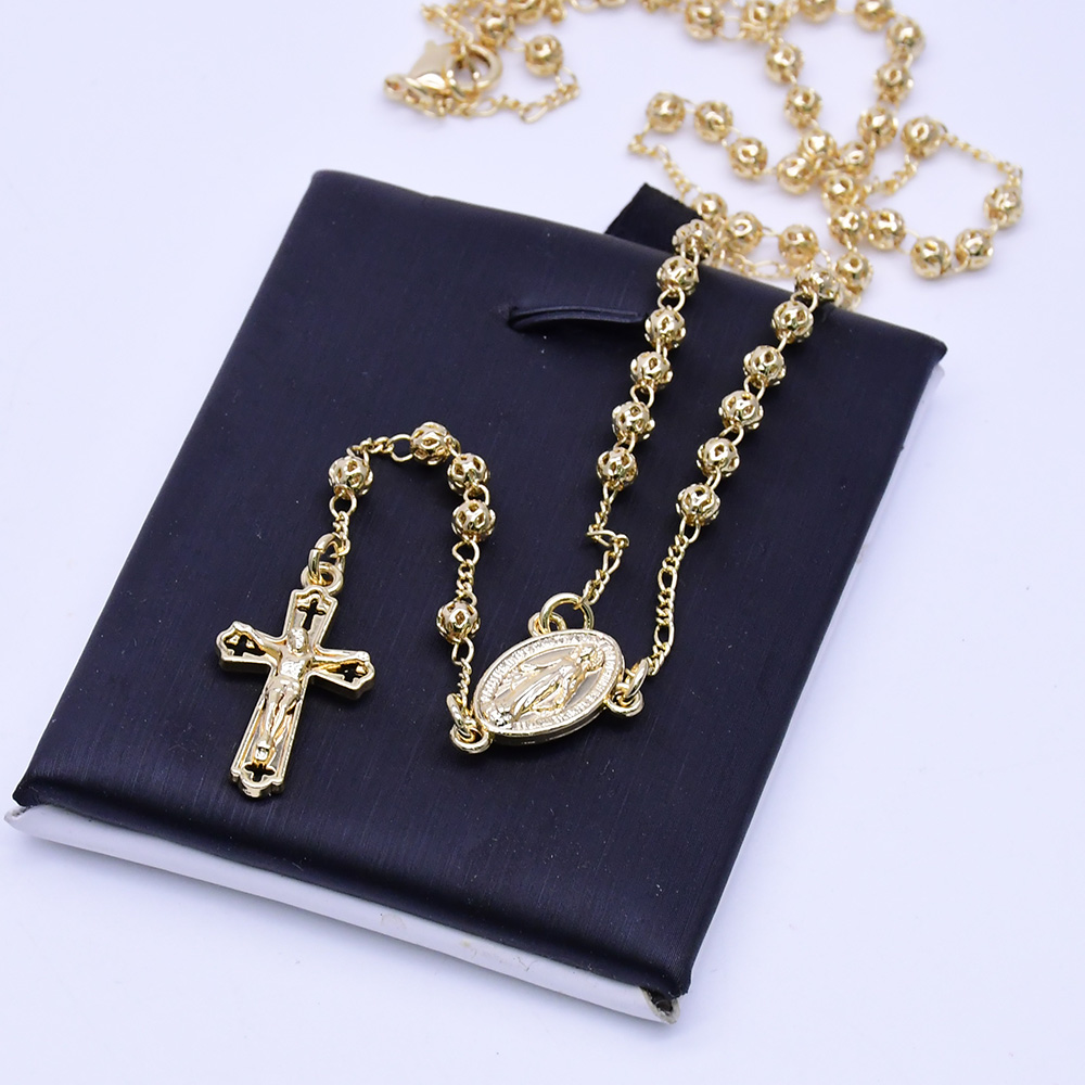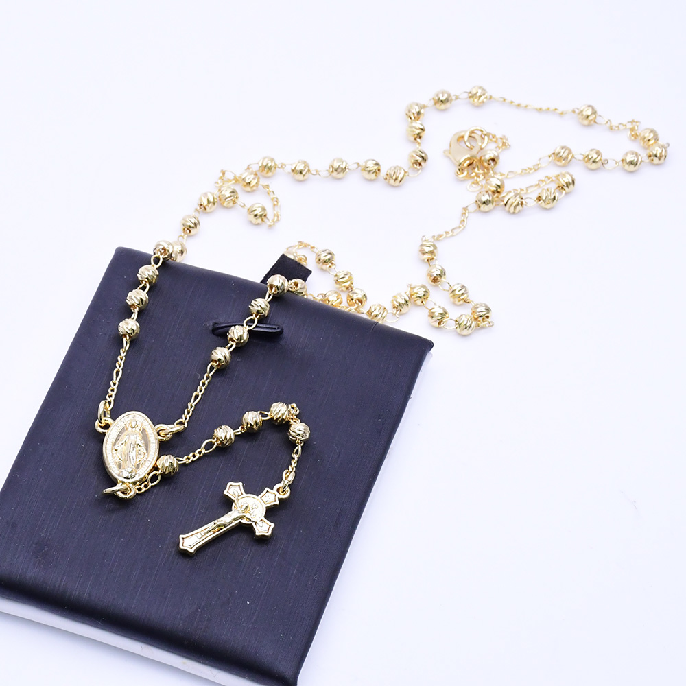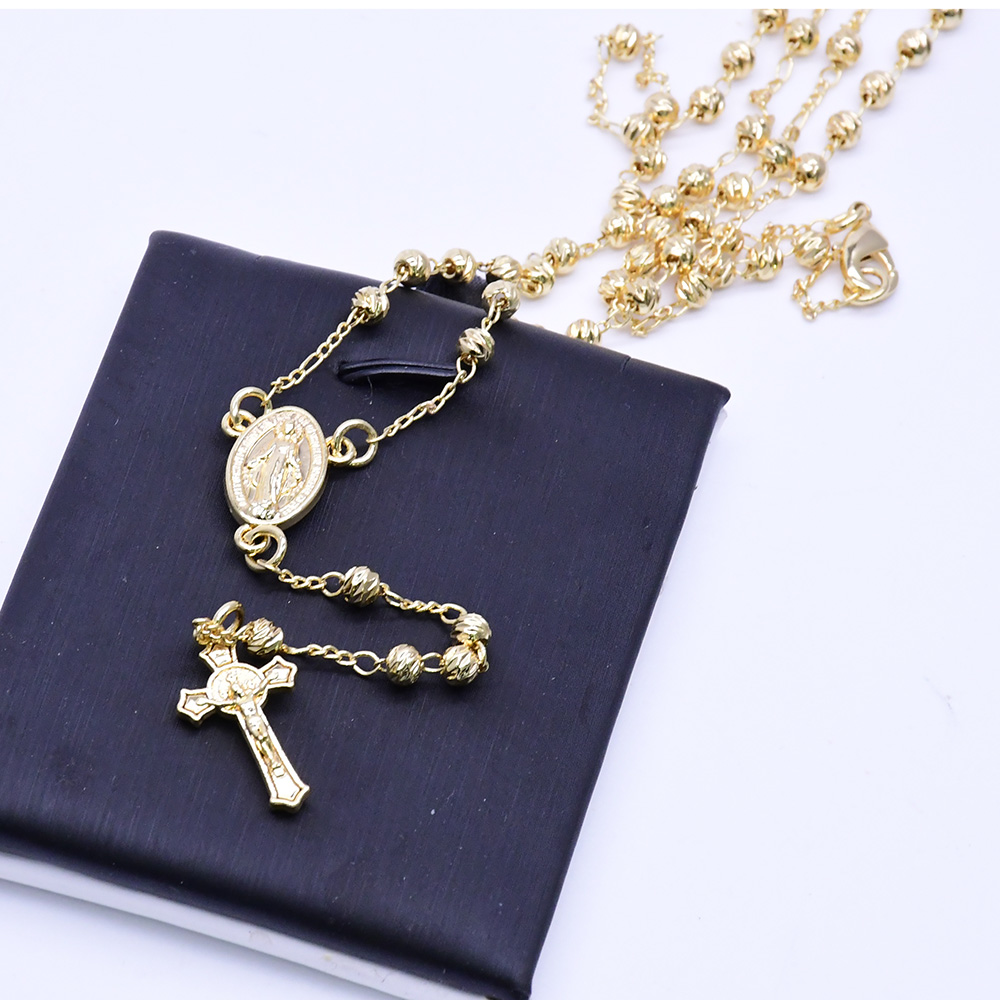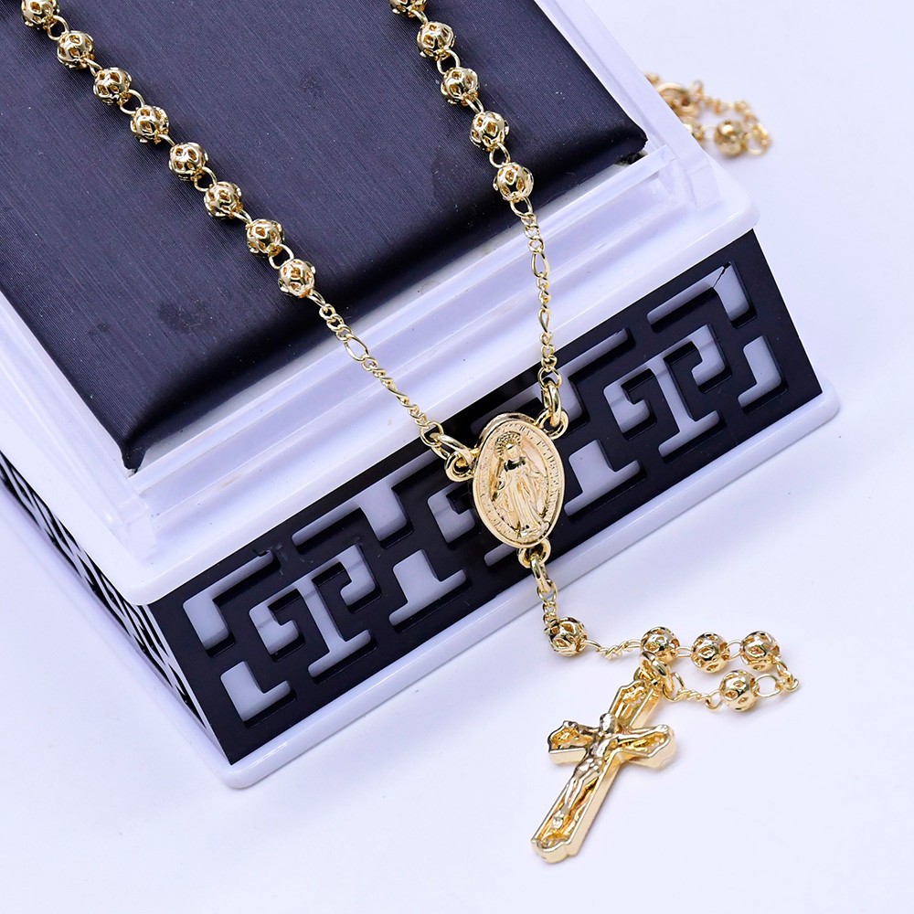 鍍18K金銅珠鏈天主教飾品圣母圣子基督念珠十字架項(xiàng)鏈