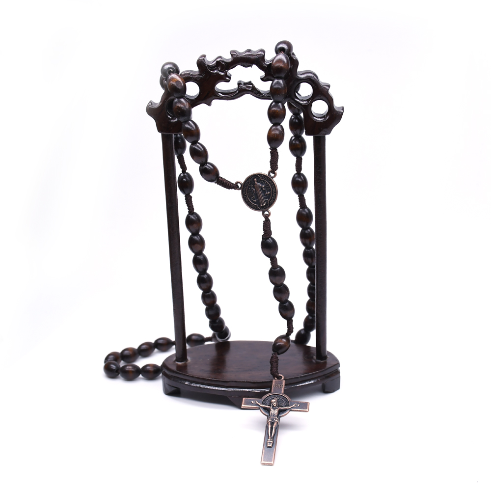 (深咖)念珠項(xiàng)鏈木珠手工編制十字架項(xiàng)鏈 外貿(mào)飾品