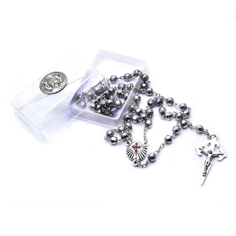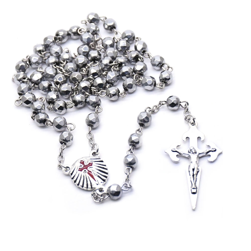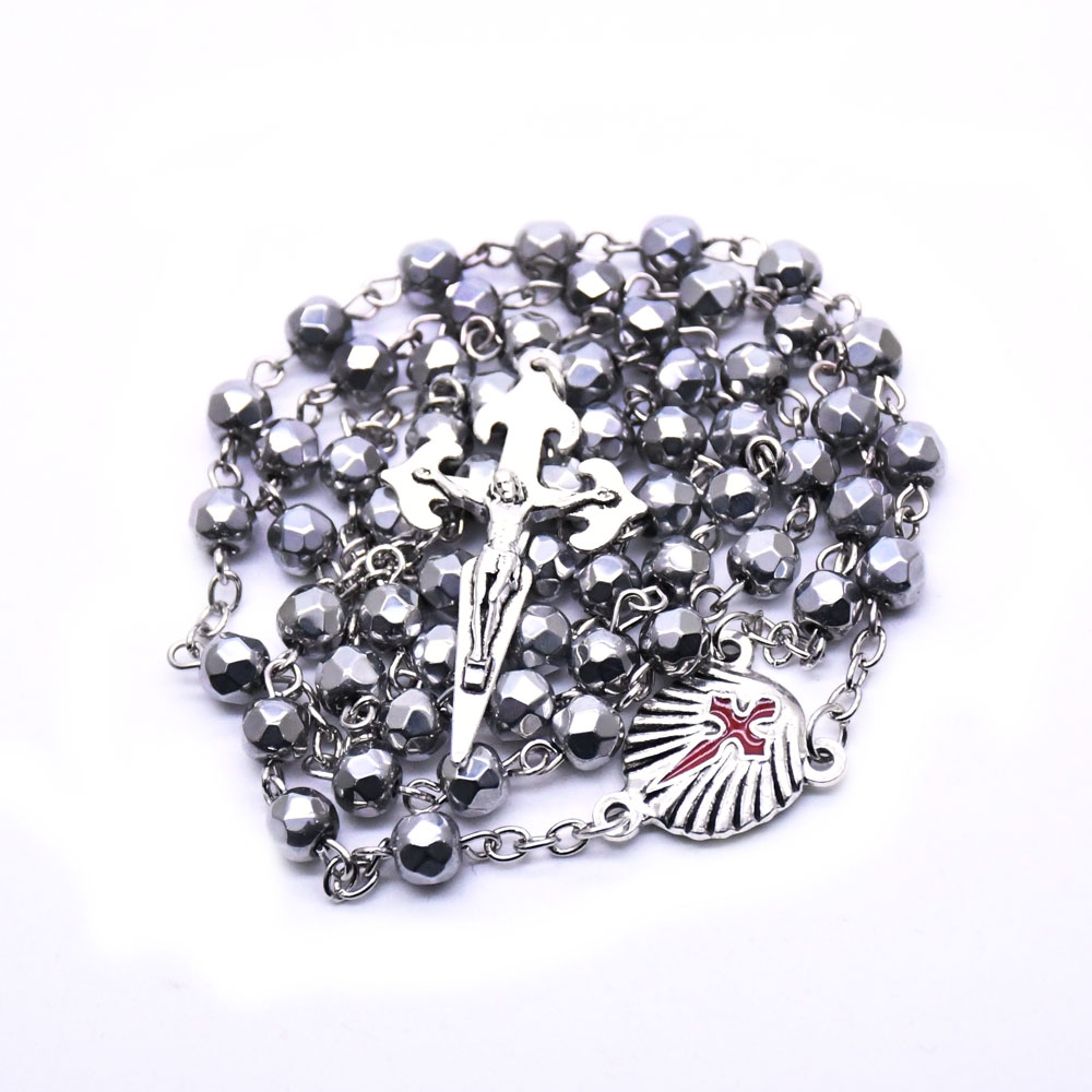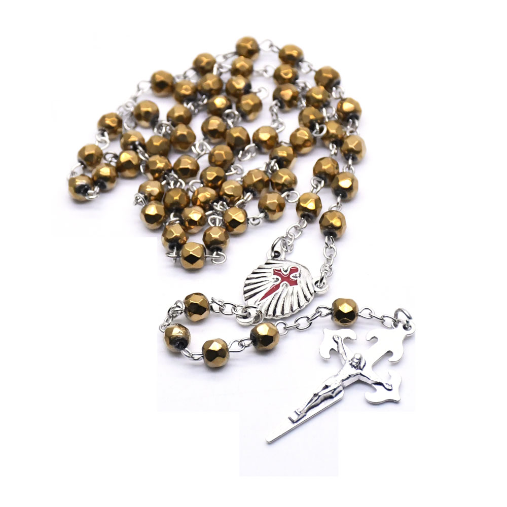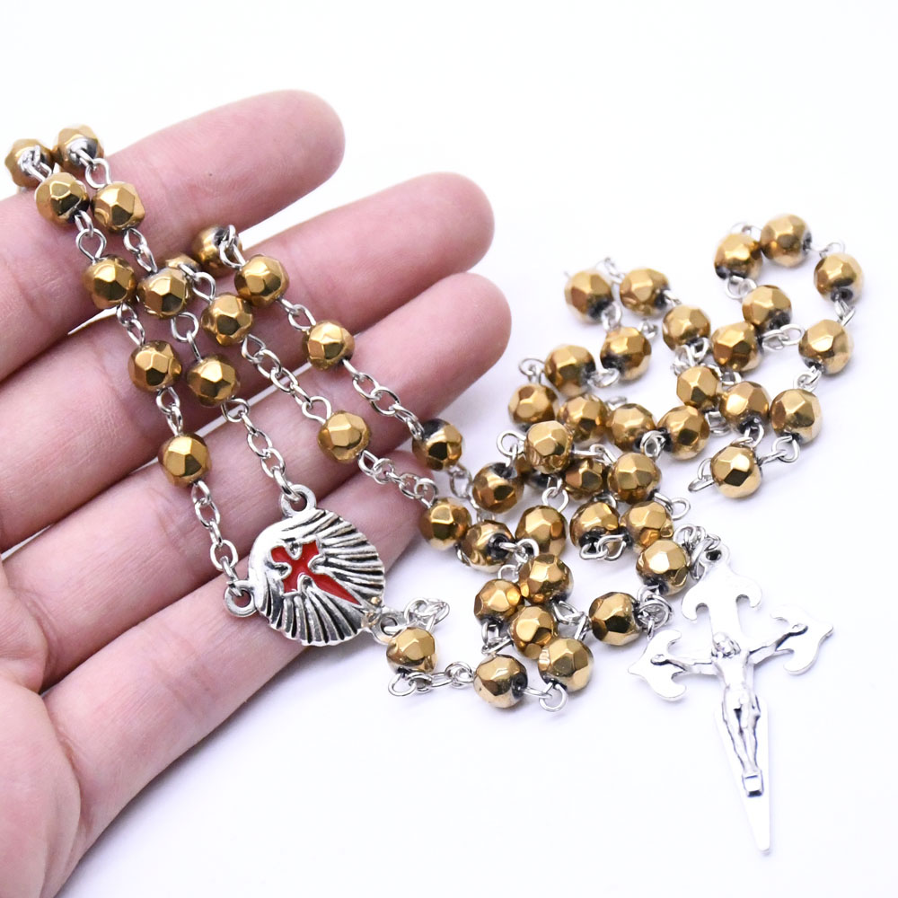 盒裝6mm金光水晶十字架念珠項鏈圣地亞哥禱告念珠
