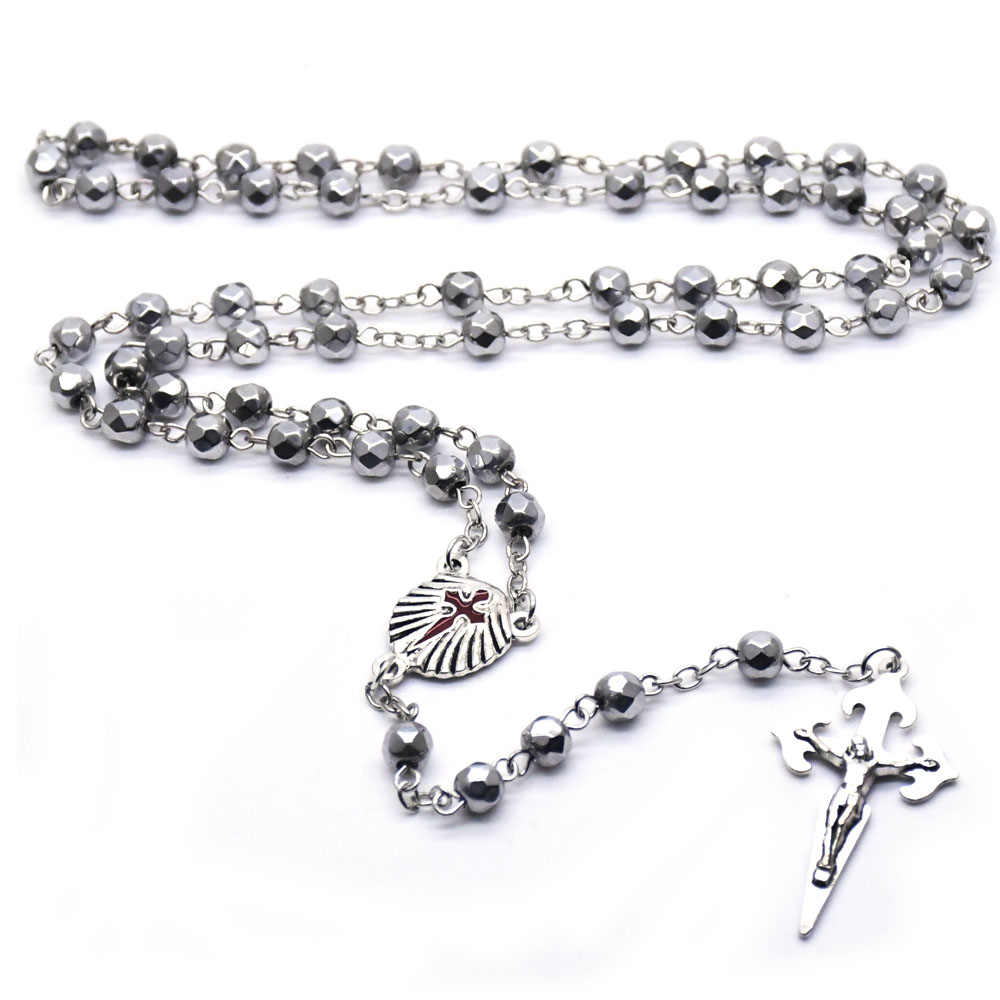 500條起訂 6mm水晶帶花托念珠項鏈十字架項鏈