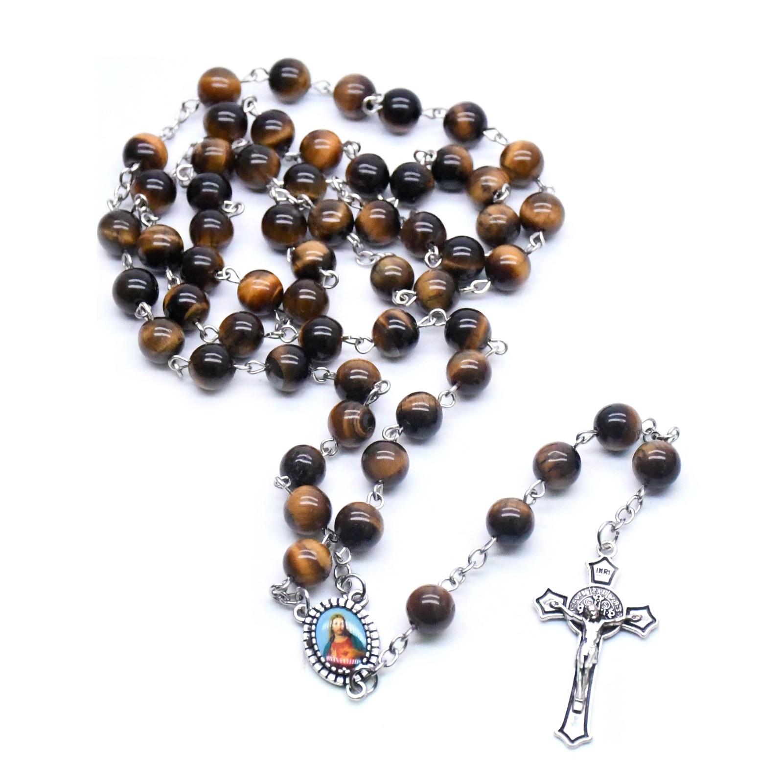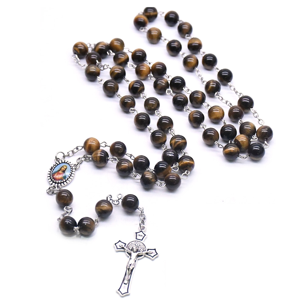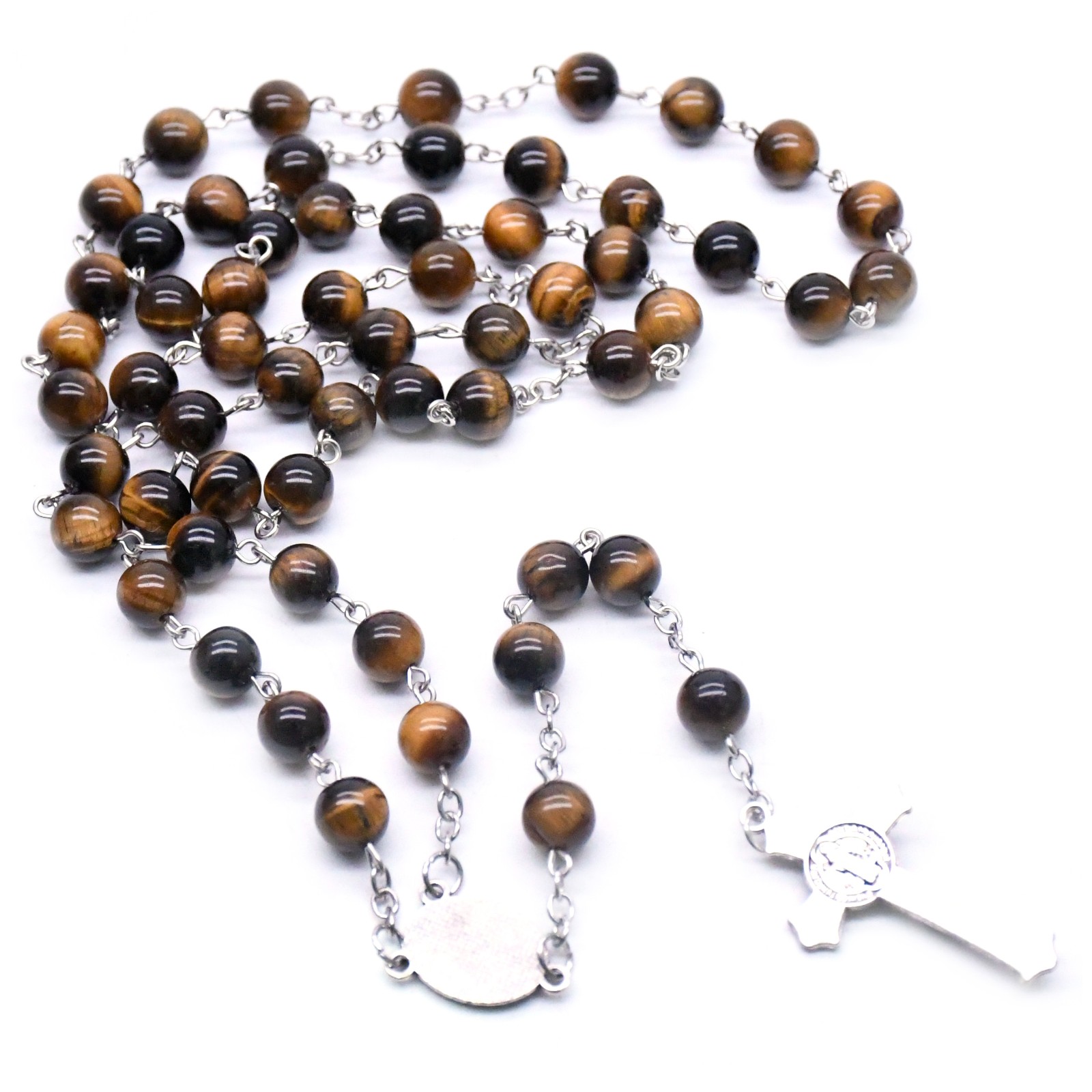 8mm黃色虎眼石天然石十字架念珠項(xiàng)鏈