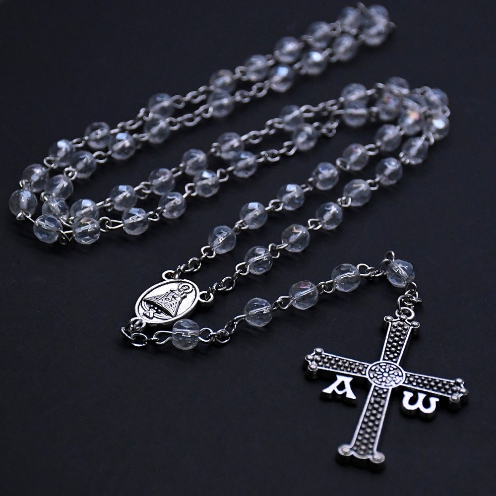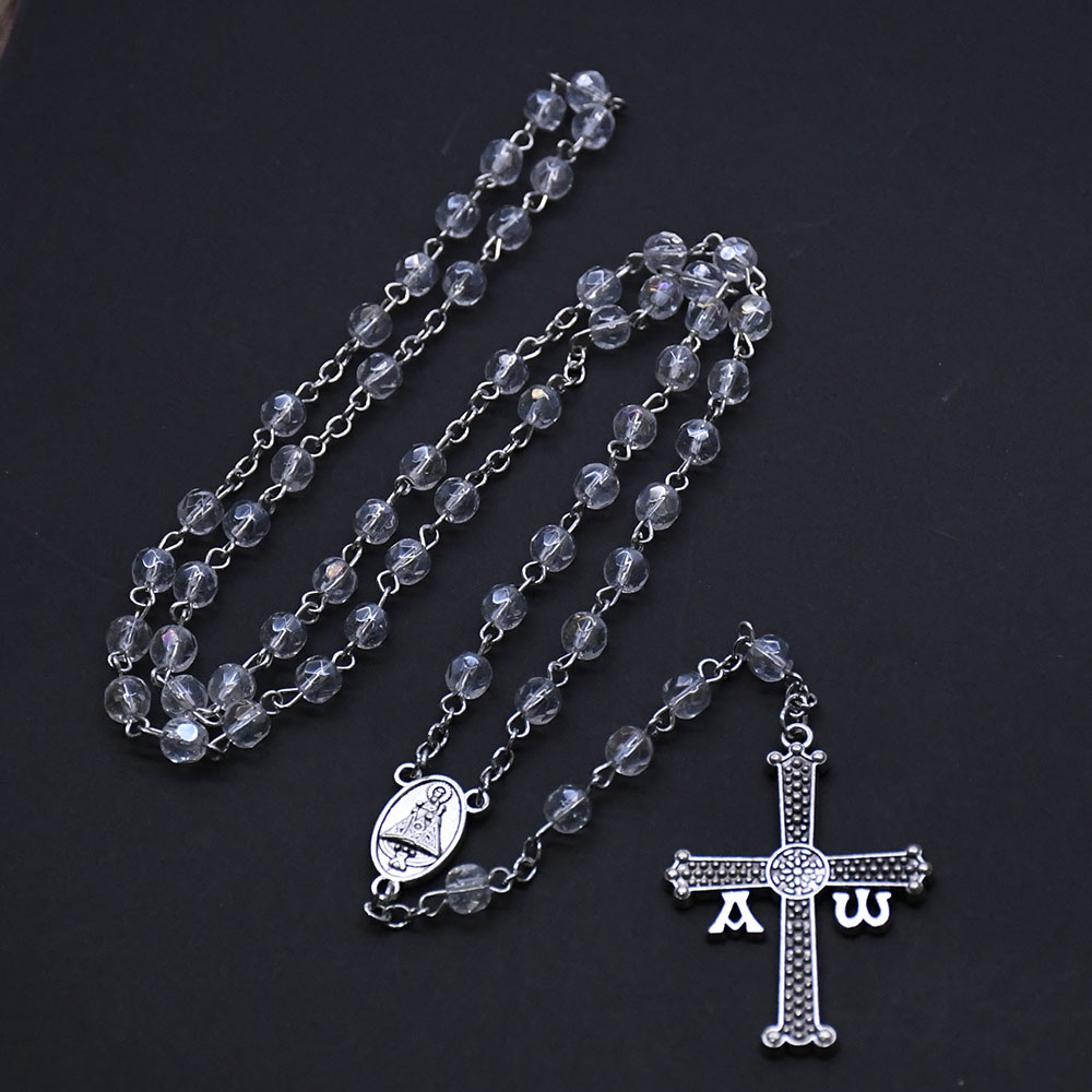 8*10mm大水晶念珠十字架宗教飾品項鏈宗教飾品批發(fā)