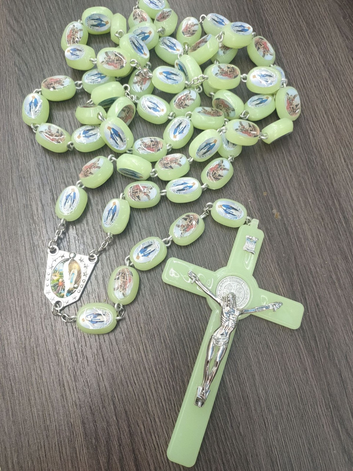 20mm發(fā)光夜光念珠項鏈掛式墻壁裝飾十字架wall rosary 223g外貿(mào)飾