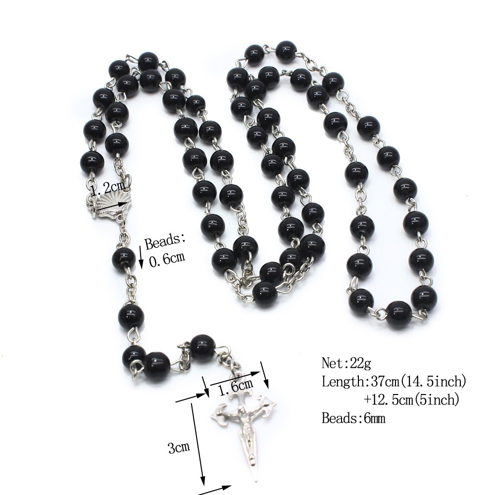 (咖色)Rosary念珠飾品項(xiàng)鏈仿陶瓷珠十字架項(xiàng)鏈