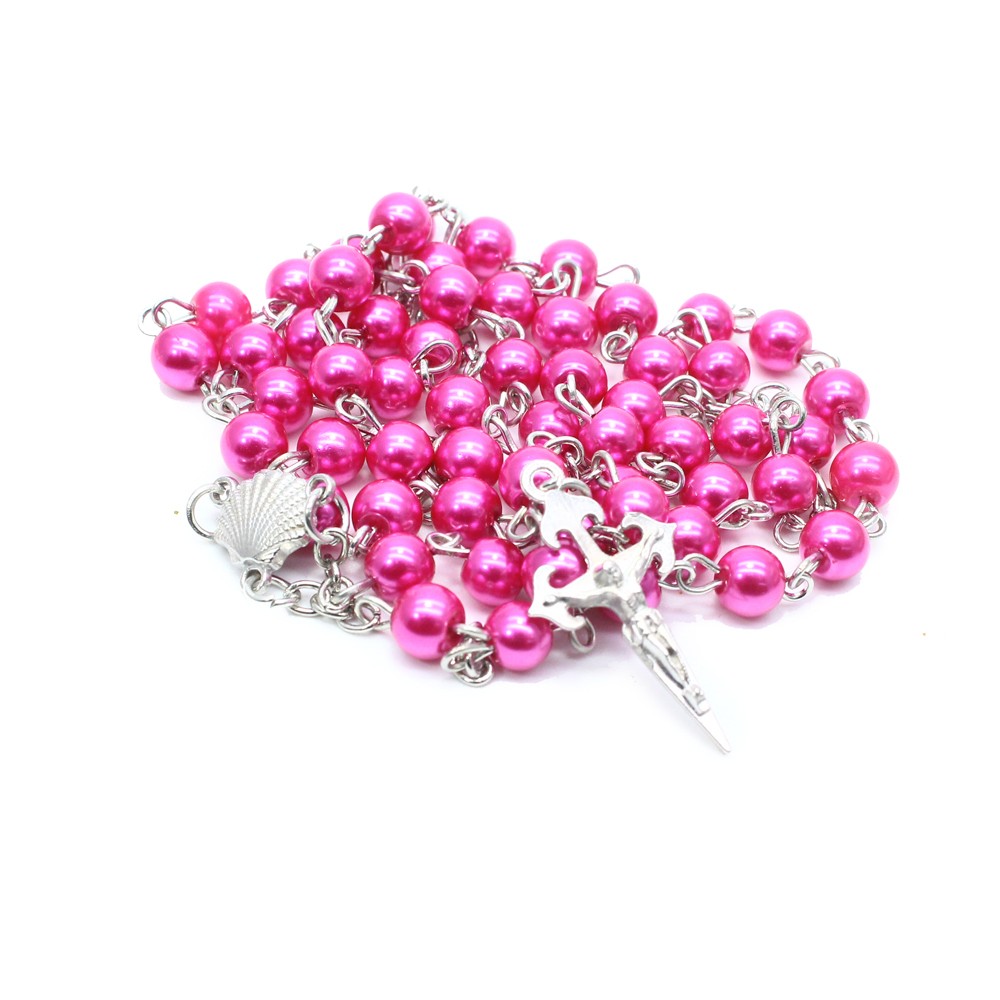 (粉)十字架項(xiàng)鏈 彎針珠鏈飾品6mm珠項(xiàng)鏈27g