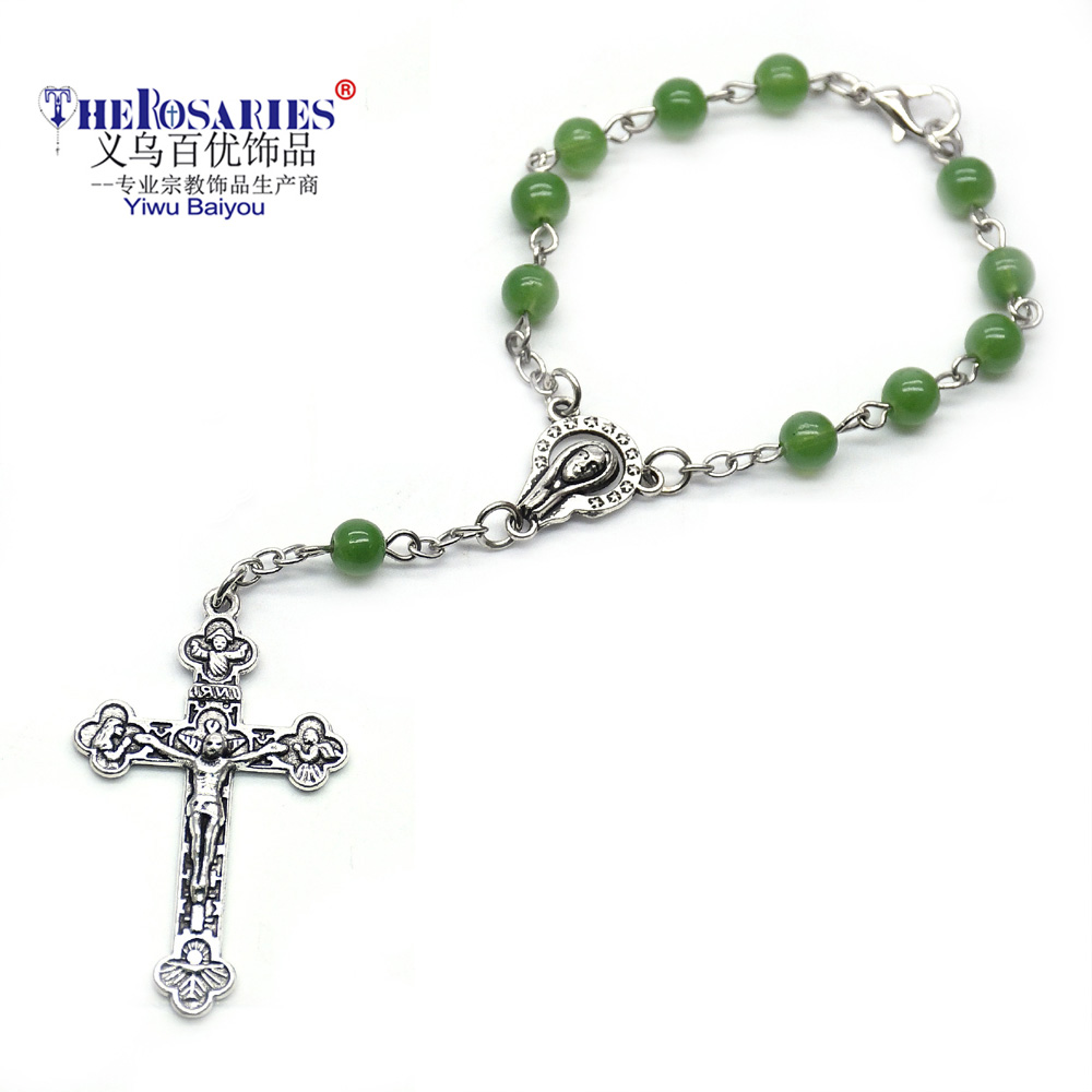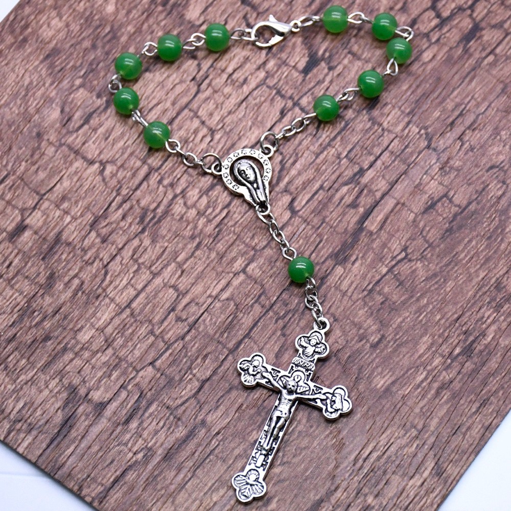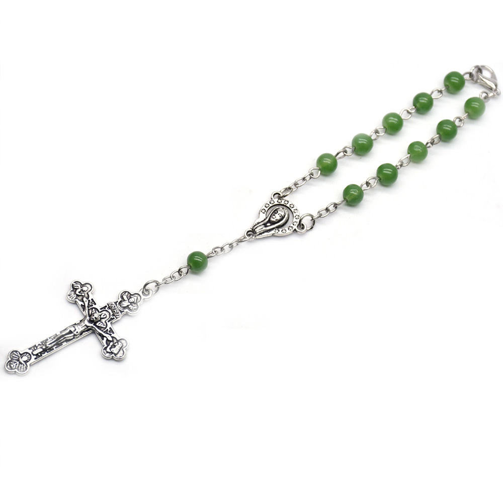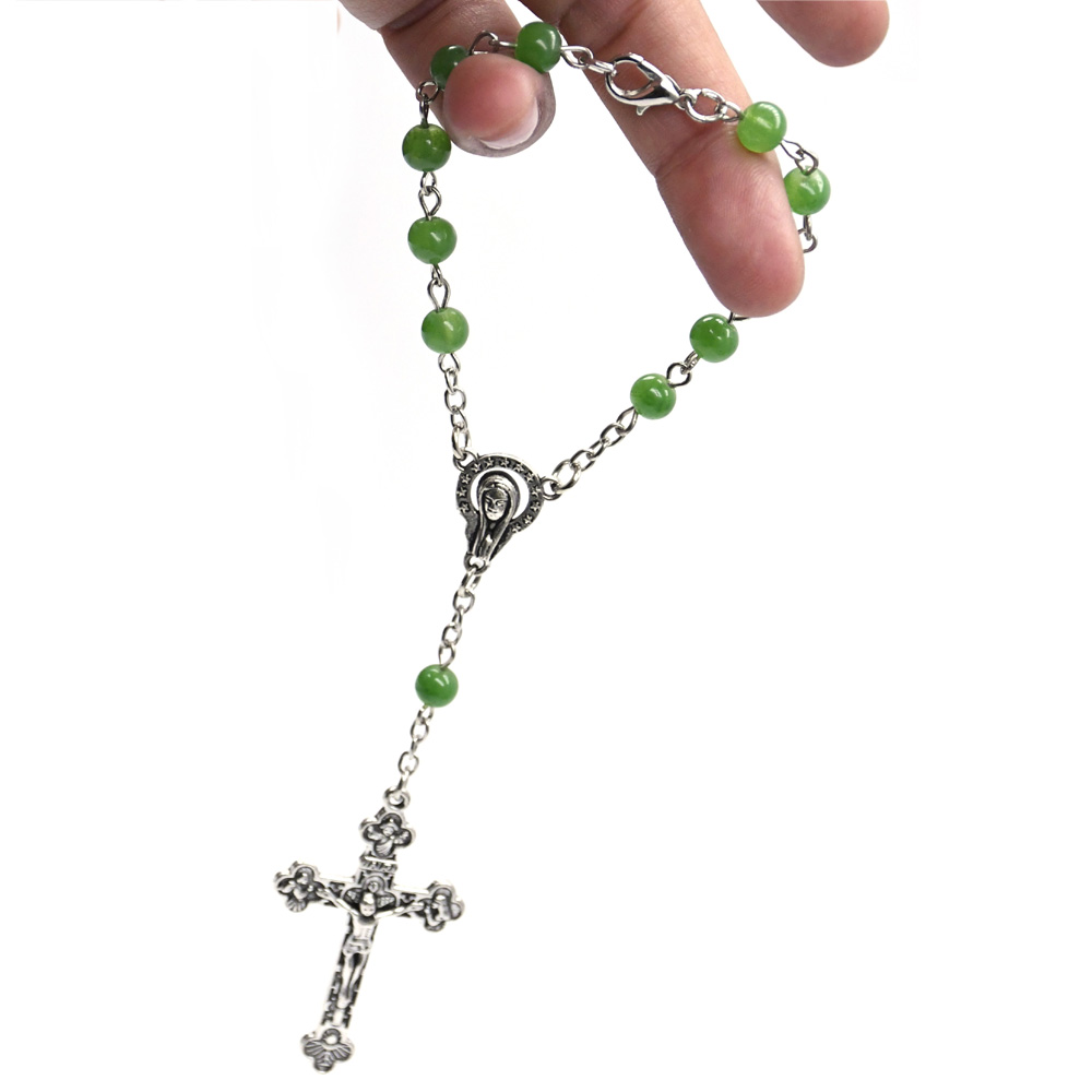 十字架綠色復(fù)古念珠手鏈?zhǔn)执汁h(huán)祈禱珠Rosary bracelet