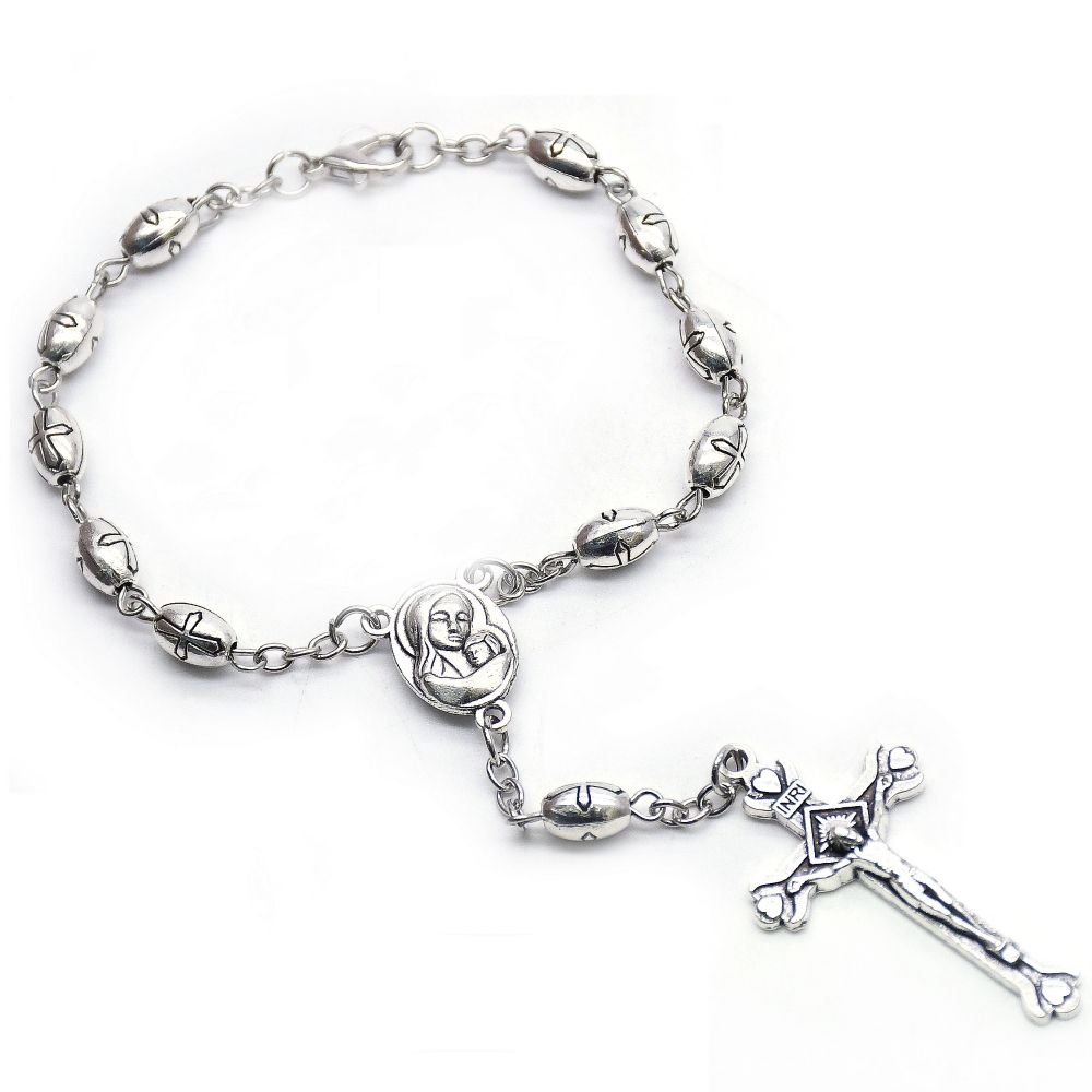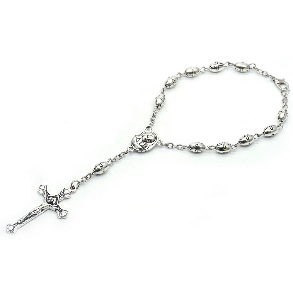 (銀色白K)車掛十字珠念珠洗禮珠十字架手鏈Rosary bracelet