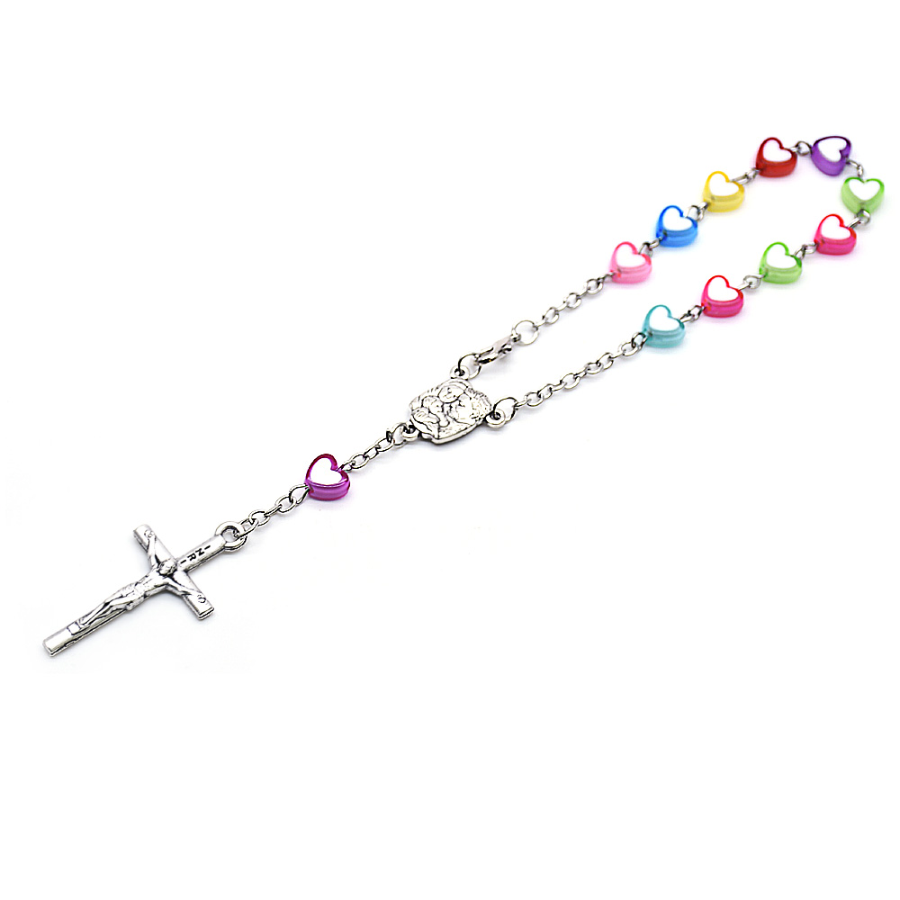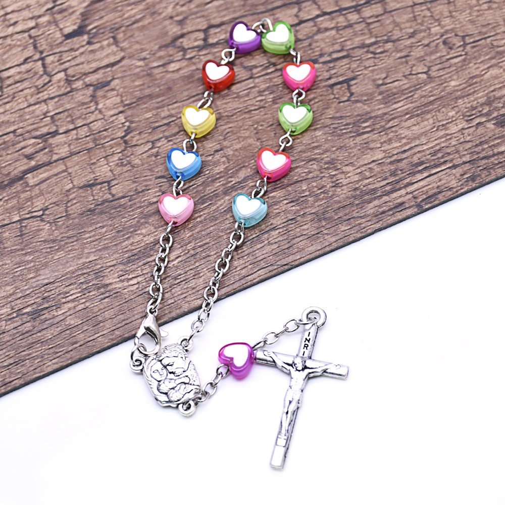 外貿(mào)批發(fā)愛心念珠手鏈?zhǔn)旨軆和噬矶\珠受洗珠