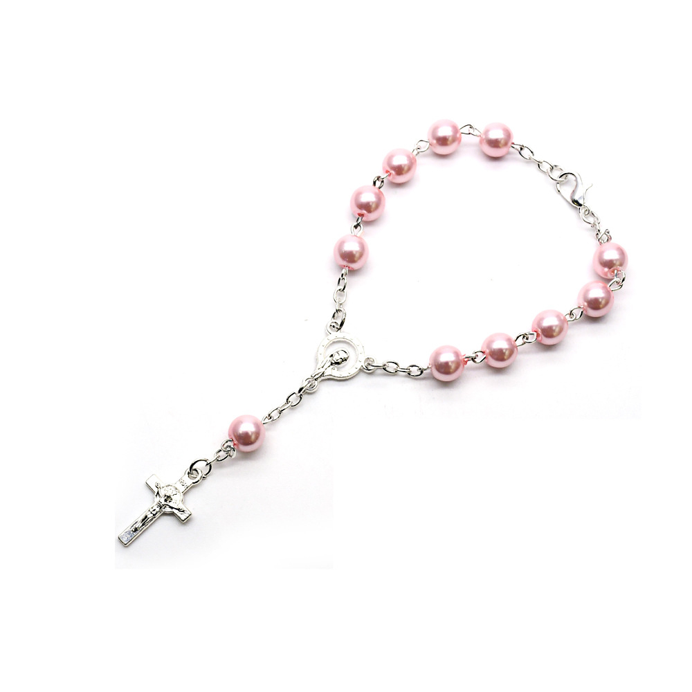 (銀色白K)車掛十字珠念珠洗禮珠十字架手鏈Rosary bracelet