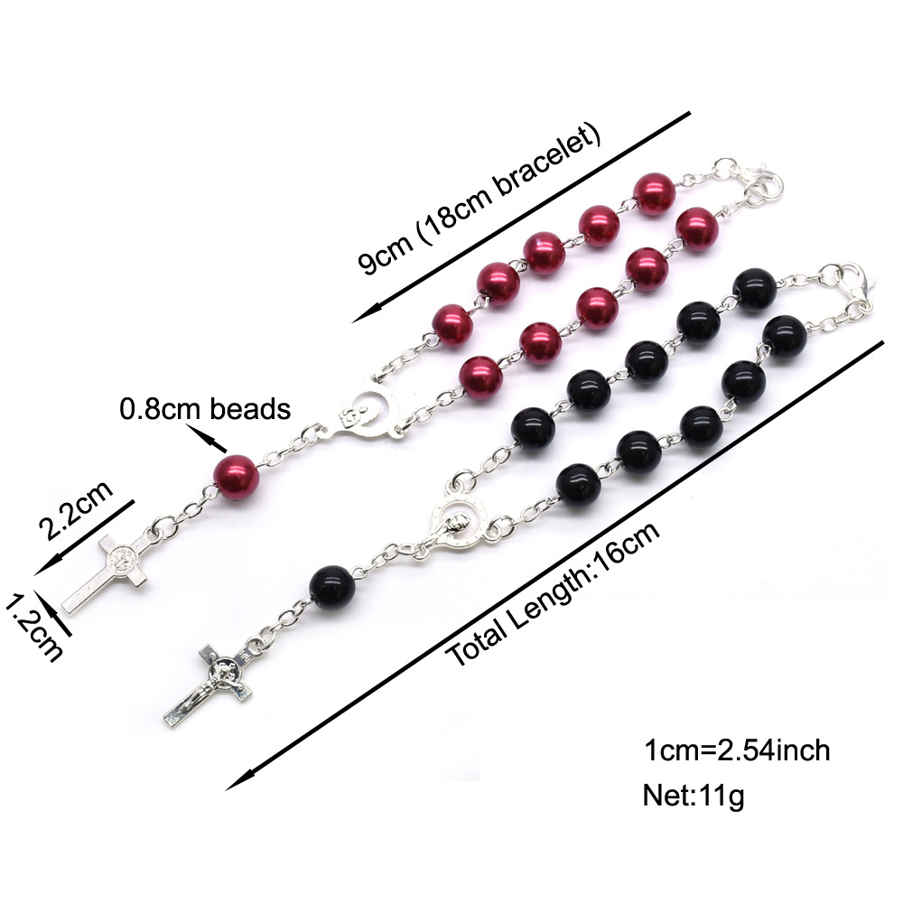 外貿(mào)貨款十字架手串珍珠念珠手鏈飾品婚禮祈禱珠手環(huán)
