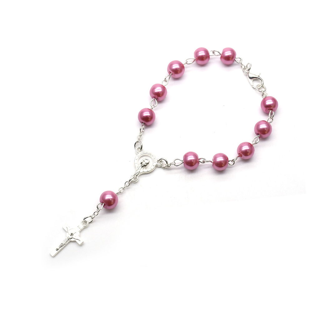 外貿(mào)貨款十字架手串珍珠念珠手鏈飾品婚禮祈禱珠手環(huán)