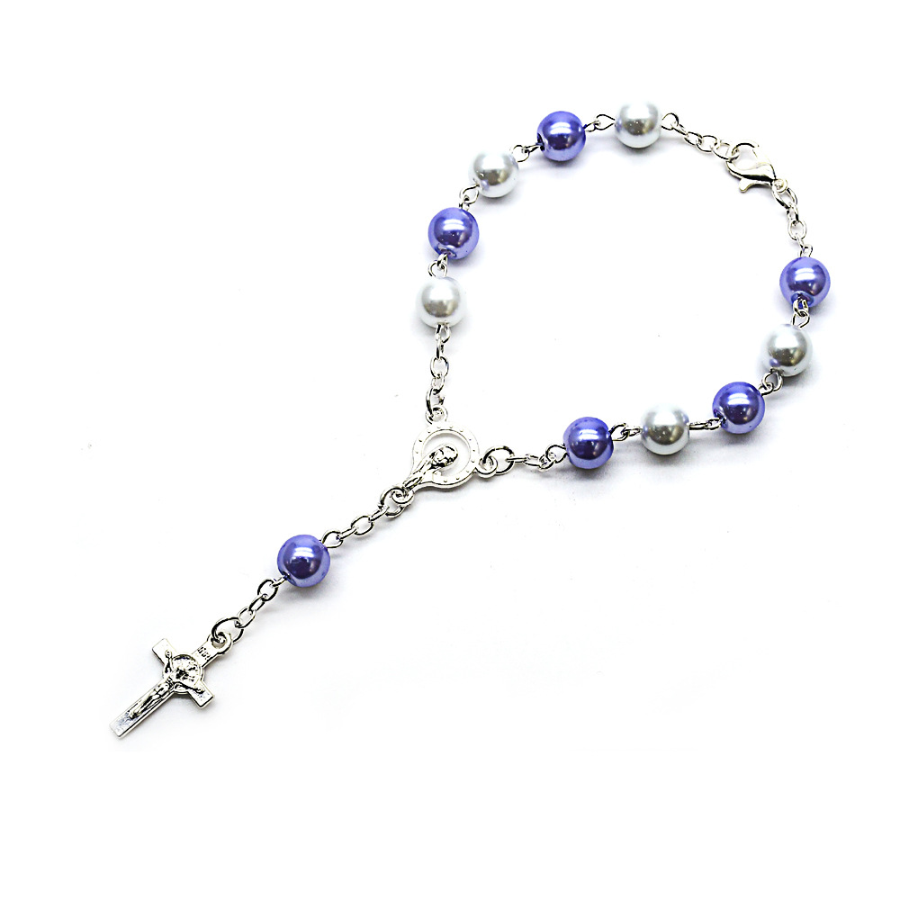 外貿(mào)貨款十字架手串珍珠念珠手鏈飾品婚禮祈禱珠手環(huán)