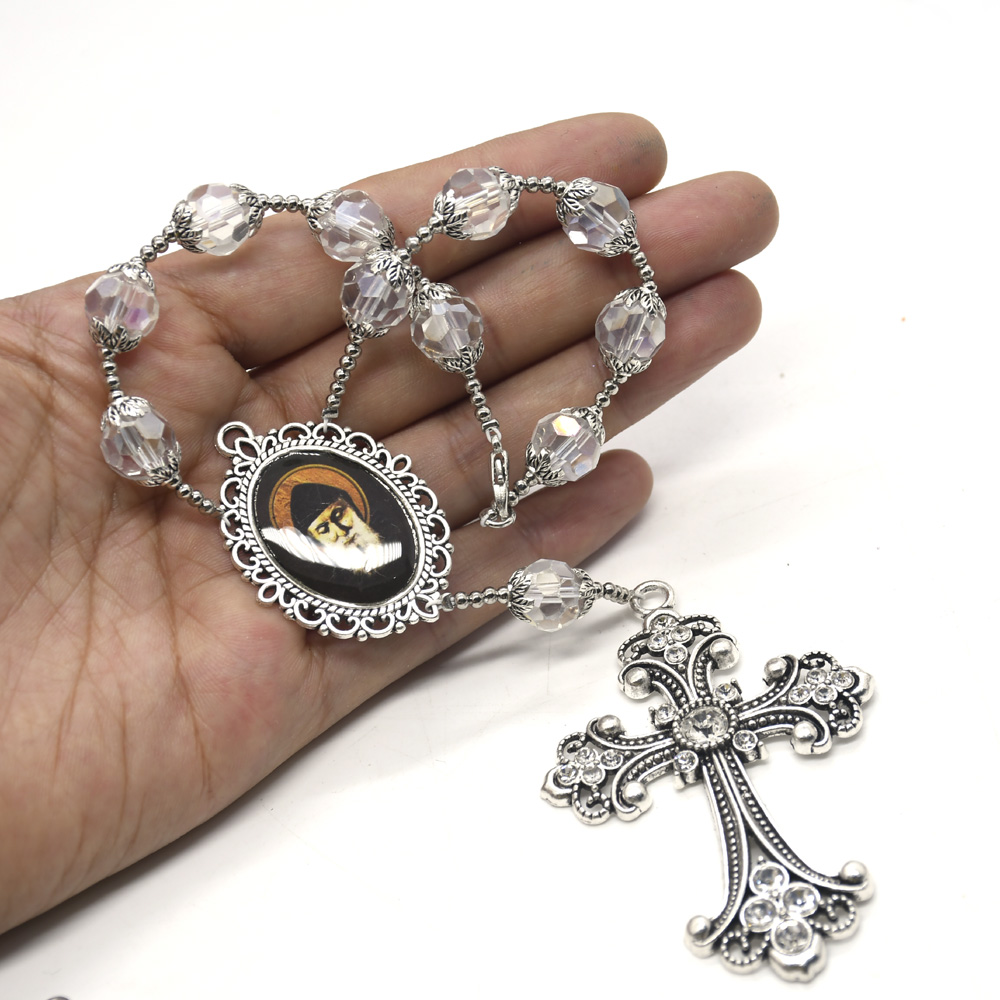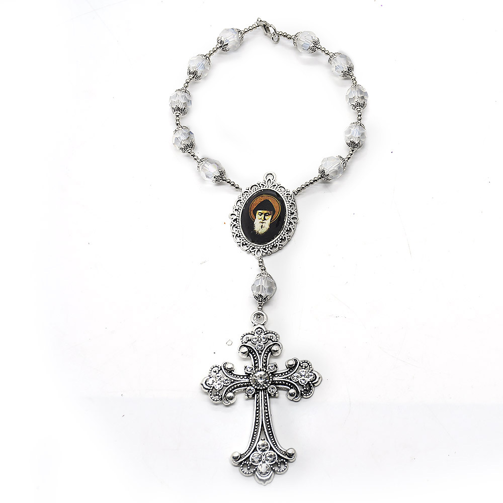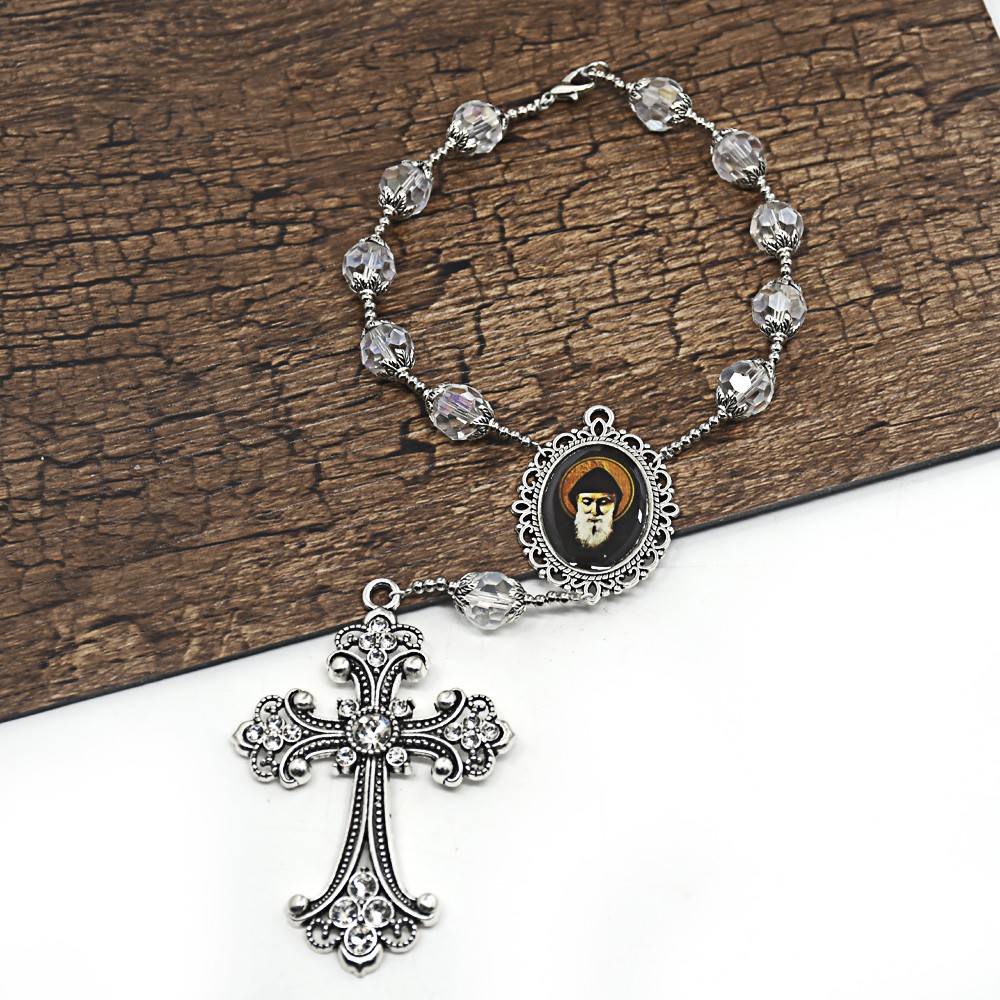 跨境爆款配飾一端念珠手鏈水晶ST.CHARBLE十字架手鏈車飾