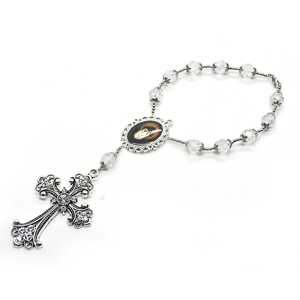 (銀色白K)車掛十字珠念珠洗禮珠十字架手鏈Rosary bracelet