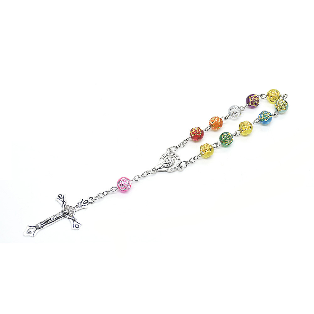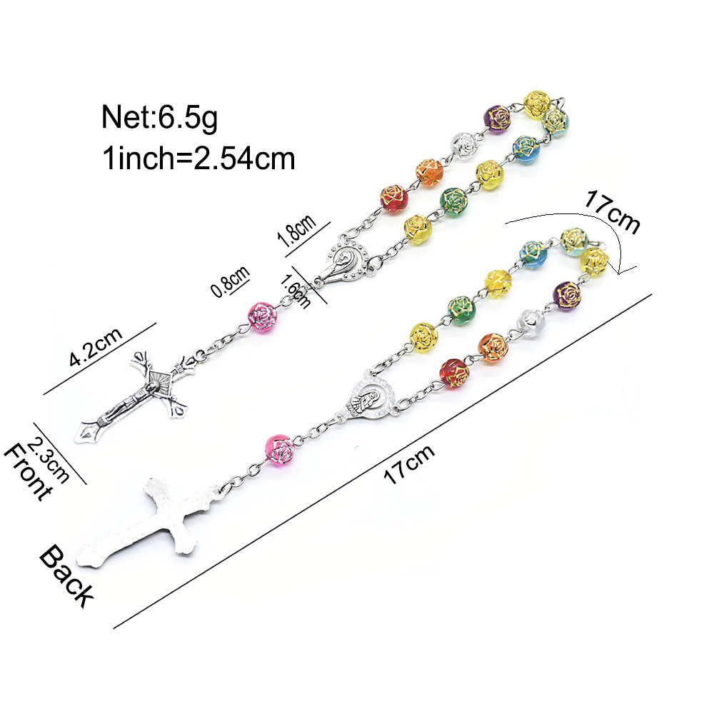 外貿(mào)跨境電商玫瑰十字架粉色念珠手鏈車掛