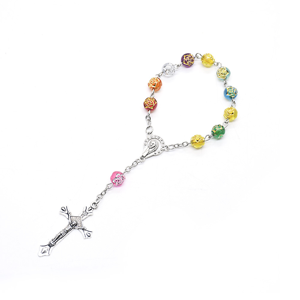 十字架手鏈跨境電商外貿(mào)玫瑰經(jīng)念珠十字架手鏈兒童受洗洗禮珠