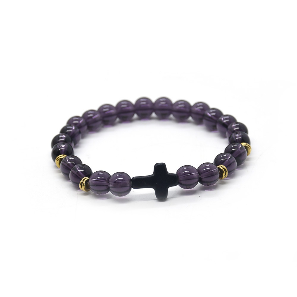 (仿紫金)手鏈天然石十字架手鏈彈力手環(huán)半寶石珠子水晶手串女