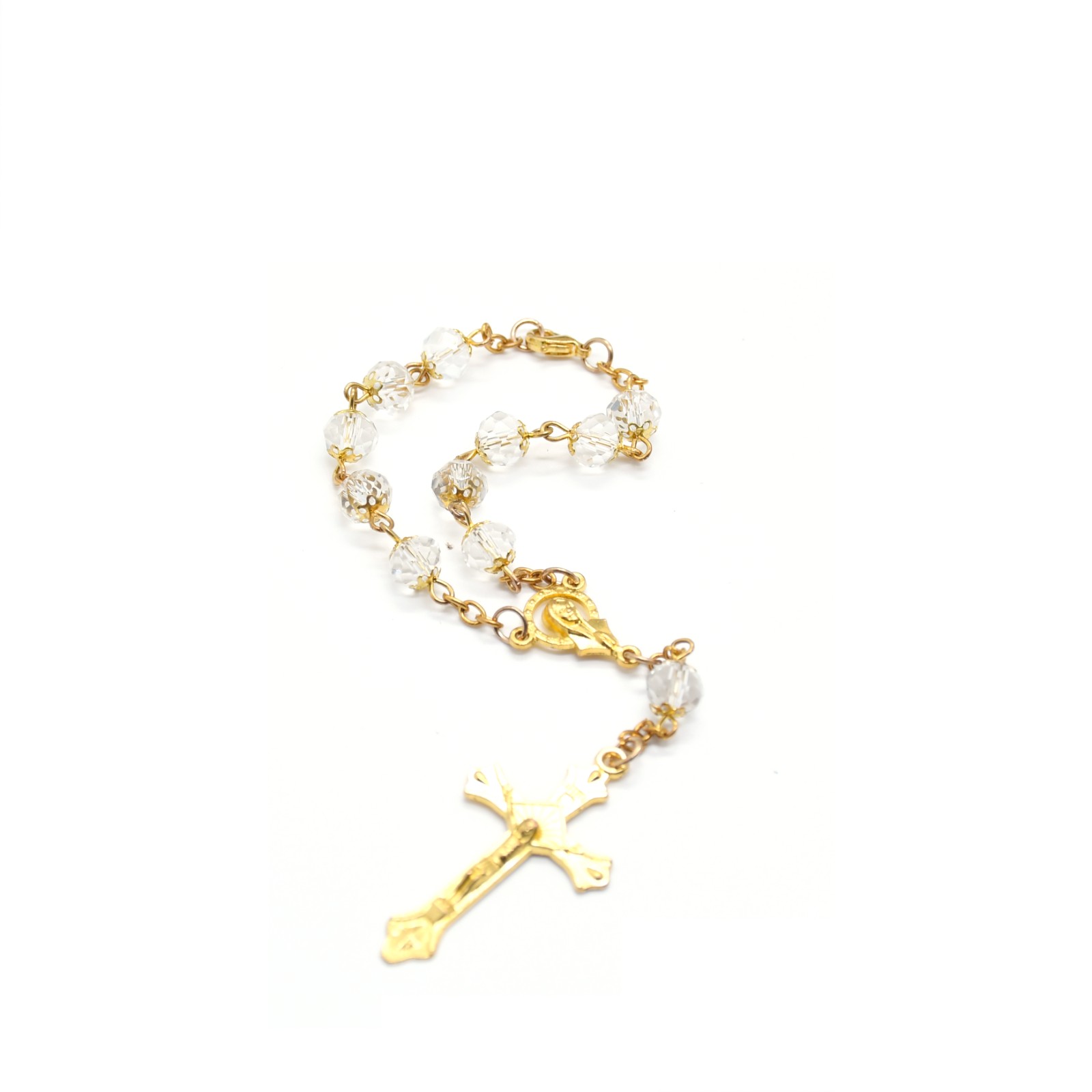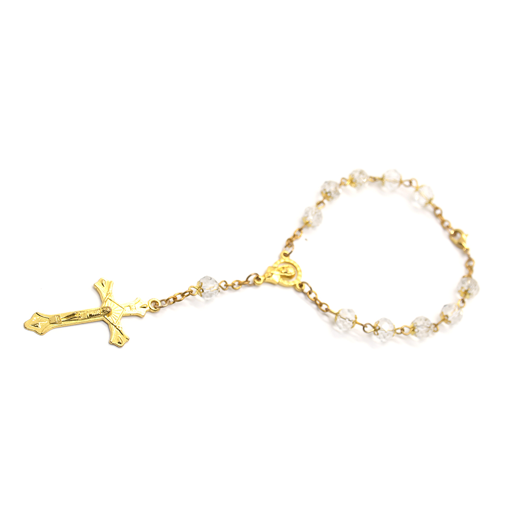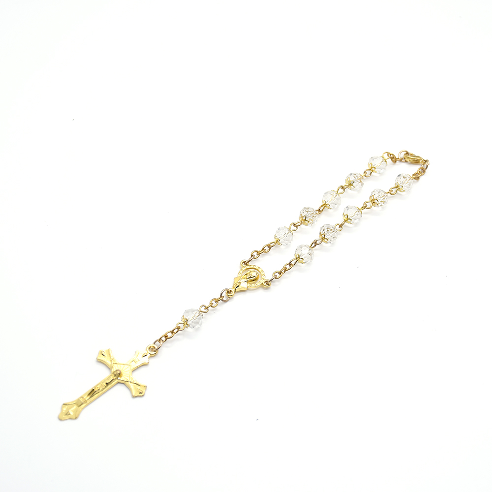 (金色)車掛十字珠念珠洗禮珠十字架手鏈Rosary bracelet