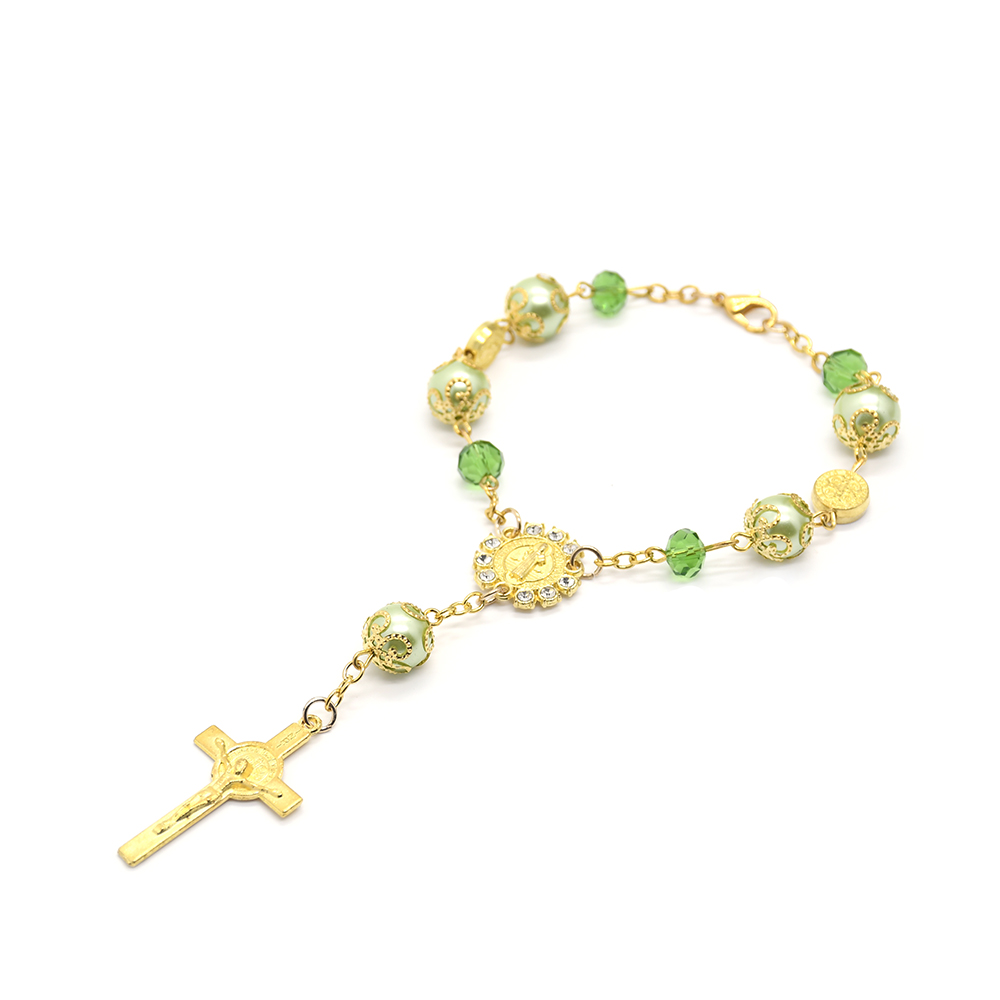 (金色)車掛十字珠念珠洗禮珠十字架手鏈Rosary bracelet