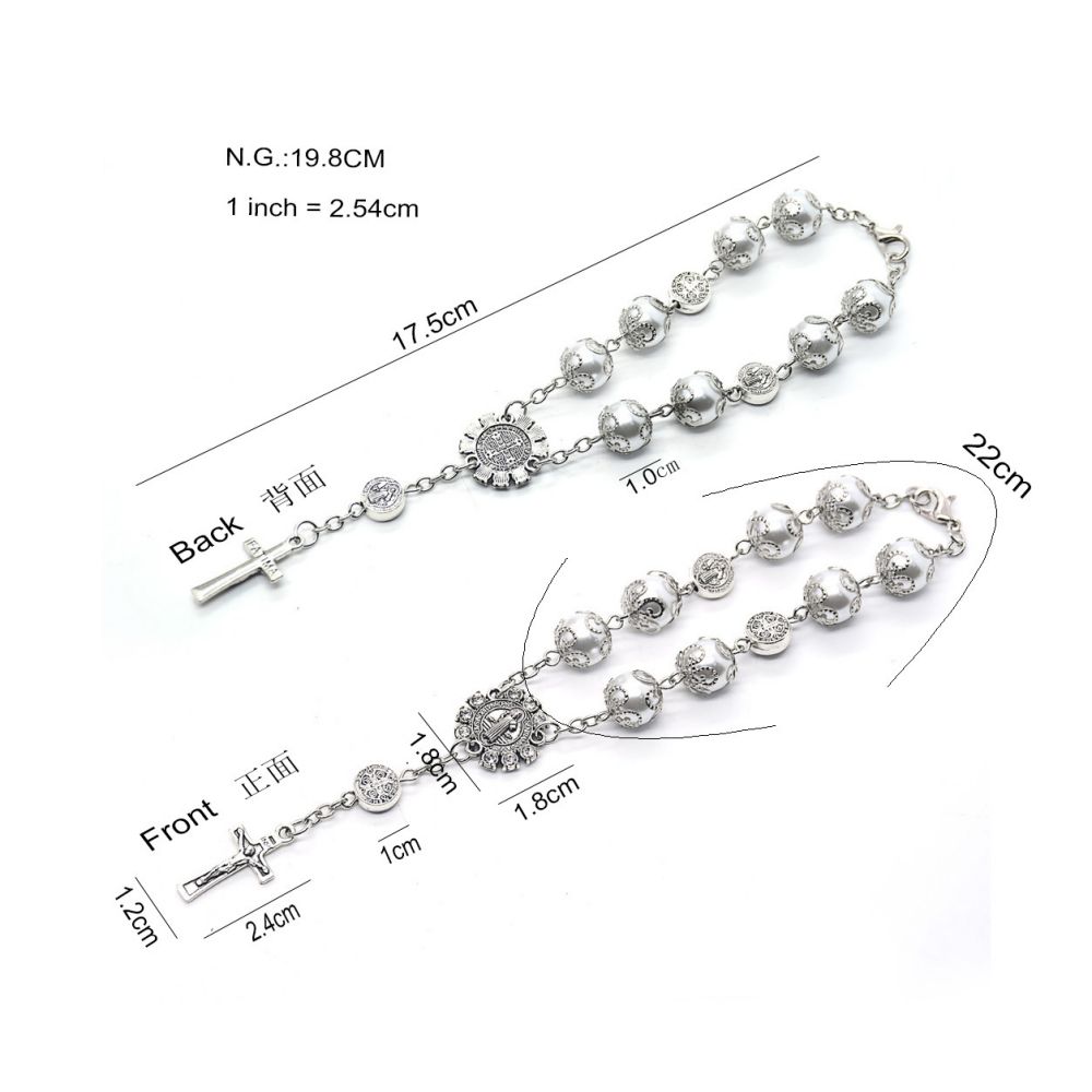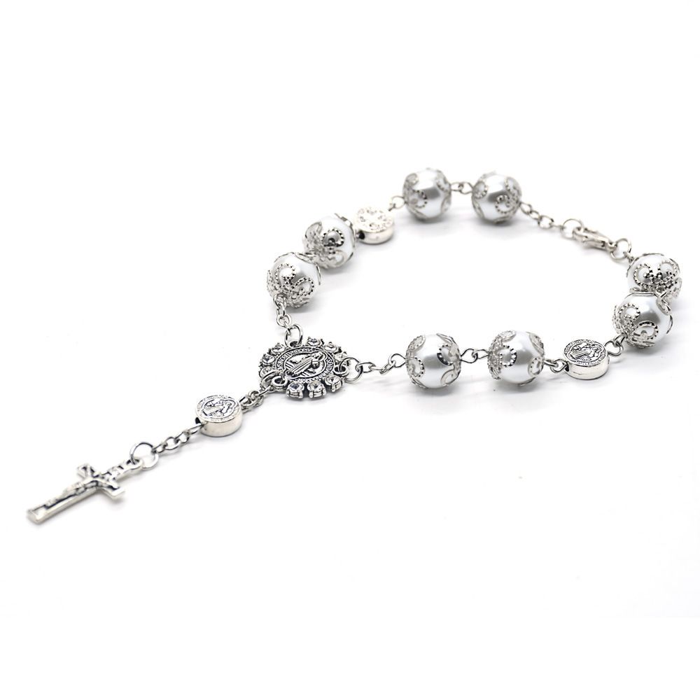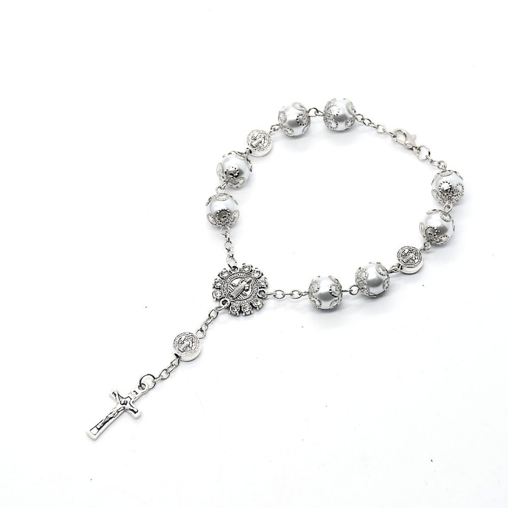 (銀色白K)車掛十字珠念珠洗禮珠十字架手鏈Rosary bracelet